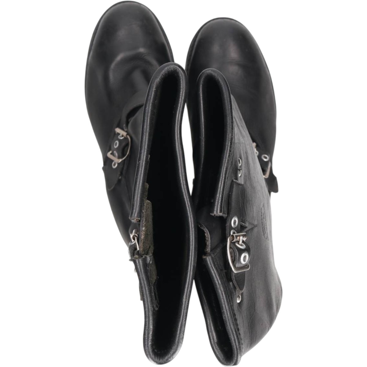 着用感: メンズ28.5cm 表記サイズ: 10 1/2 ヒール高さ: 4.2cm ブーツ高さ: 38.5cm アウトソール: 31.6cm アウトソール最大幅: 11.0cm 筒周り(内寸): 46.5cm ![]() | ![]() ランク:C USEDですので使用感などございますが、まだまだご愛用していただけます。 古着という事をご理解の上ご注文よろしくお願いします。 【状態追記】 ●両足、トゥに裂け ●両足、ヒール擦り減り ●両足、踵に履き皺 ●両足外側部、つま先付近に裂け ●右足、アウトソール中央付近パッチ欠損 ●右足内側部、つま先に裂け ●右足外側部、くるぶし付近に汚れ ●右足外側部、バックルベルトに破れ・バックルに錆び ●右足外側部内側、足首全体に汚れ ●左足、タンに裂け ●左足、アウトソール中央付近パッチ剥離 ●左足内側部、くるぶし付近に裂け ●左足内側部、足の甲付近に擦れ ●左足内側部、金具錆び ●左足外側部、足の甲付近に裂け ●左足外側部、踵・下部中央付近に擦れ |