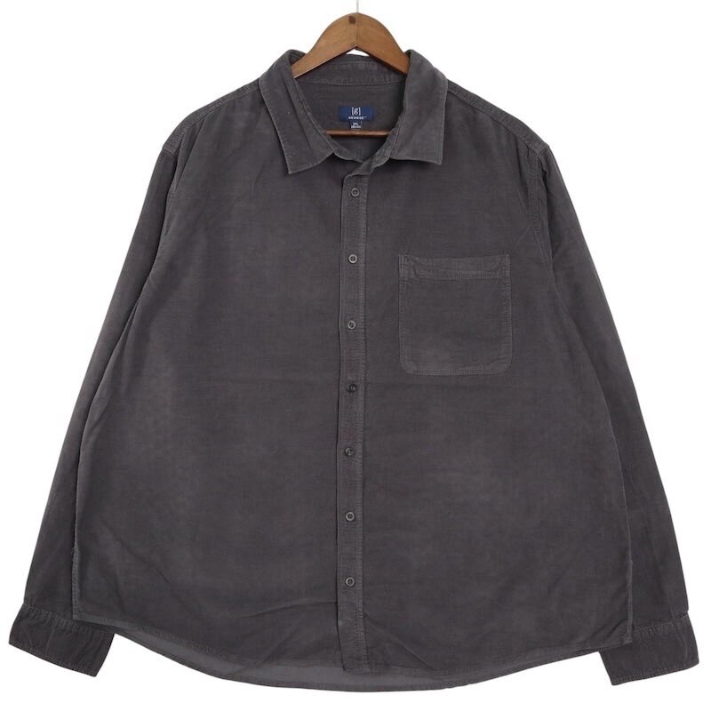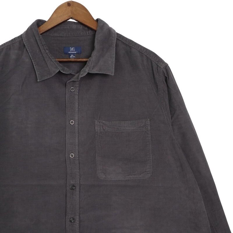GEORGE 細畝 長袖コーデュロイシャツ 大きいサイズ古着 メンズUS-2XLサイズ 無地 グレー系 sc-0690