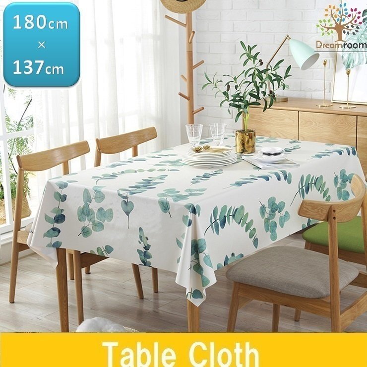 テーブルクロス グリーンリーフ PVC製 防水 防油 加工 長方形 180cm×137cm ランチョン ティーマット テーブルリネンセットI-010
