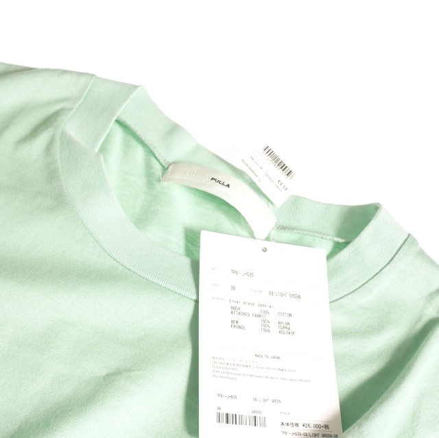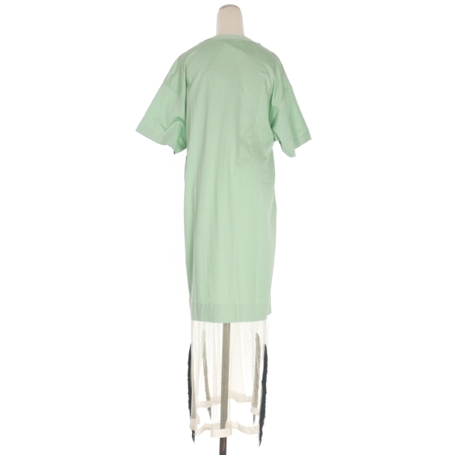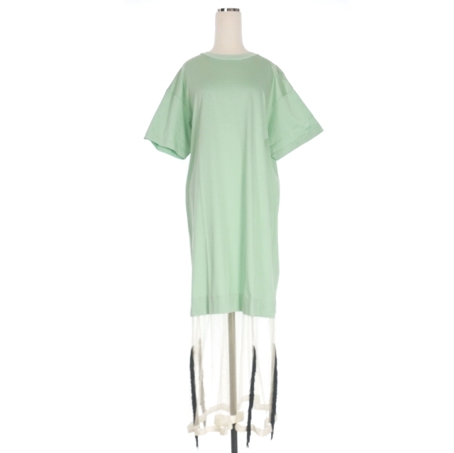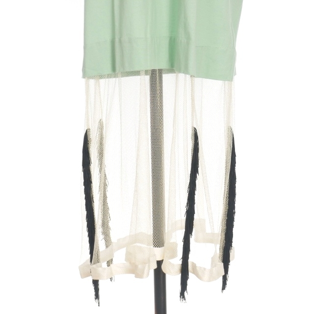 未使用品 トーガ プルラ TOGA PULLA 裾メッシュ フリンジ ロングワンピース ドレス 半袖 36 ライトグリーン 緑 TP81-JH535 レディース