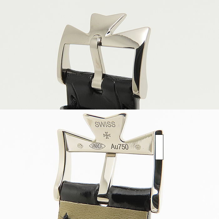 ベルト/ 尾錠/バックル | K18WG製純正尾錠 / 新品純正シャイニーアリゲーターベルト(ブラック) |