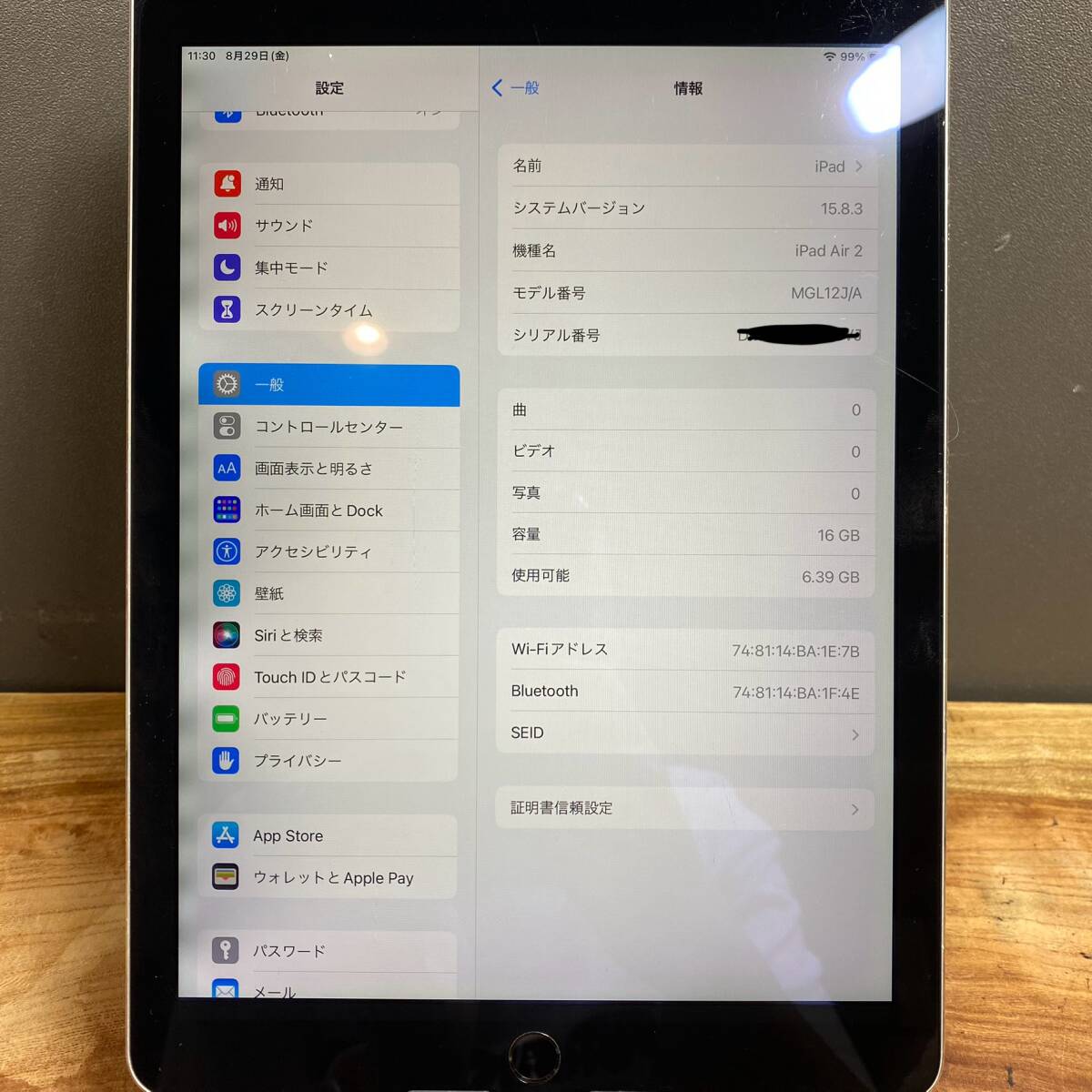 Apple iPad Air2 / 16GB / Wi-Fi / スペースグレイ②