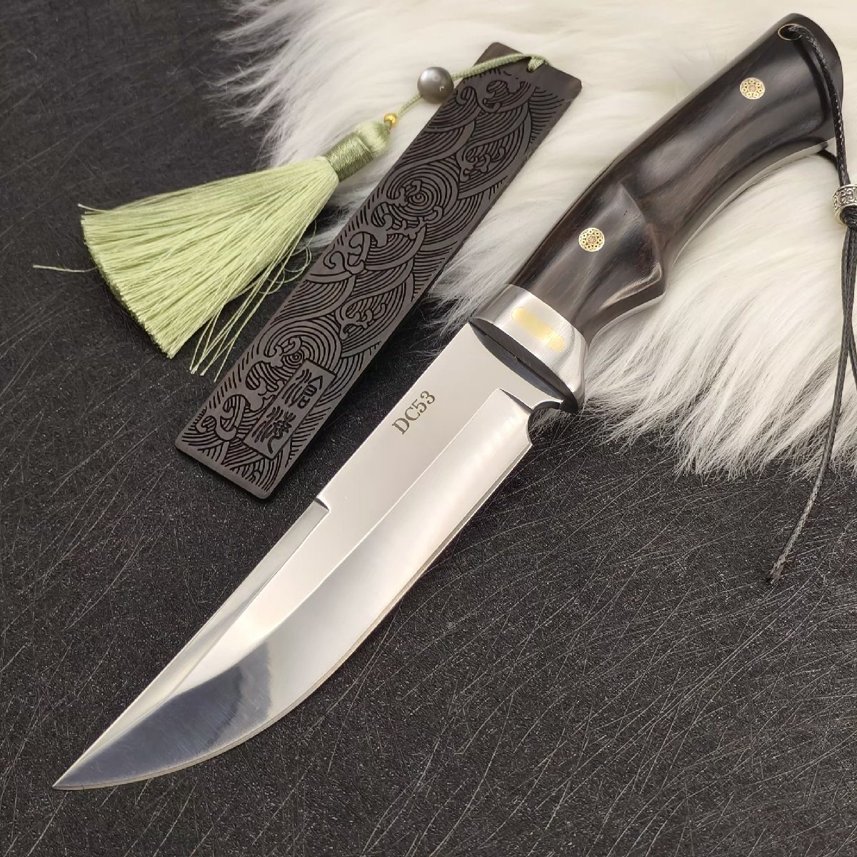 【DC53鋼】直刀 鏡面仕上げ 黒檀柄 アウトドア キャンプ用アウトドア 登山 キャンプ 野営 果物野菜のカット 全長26cm 刃渡り14cm