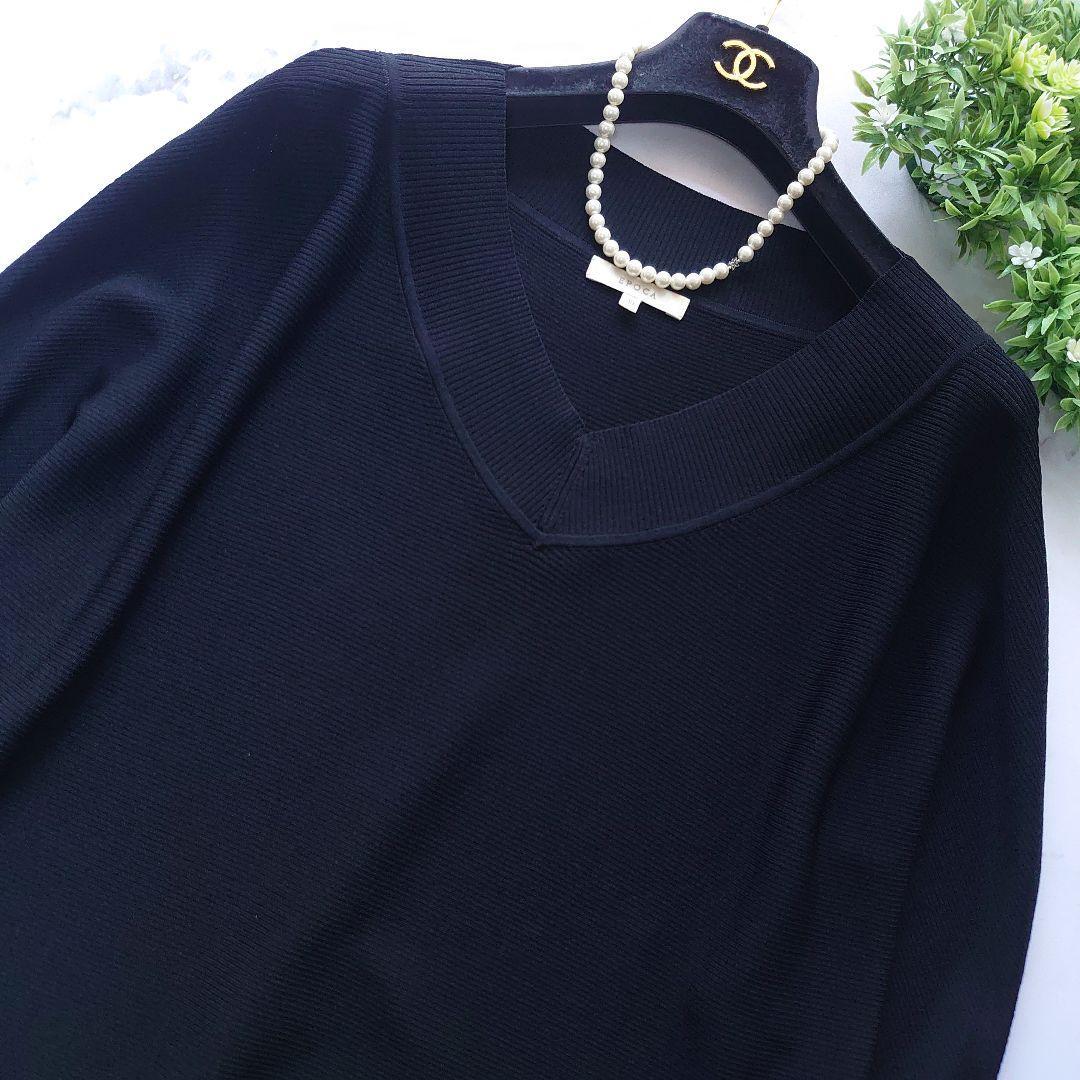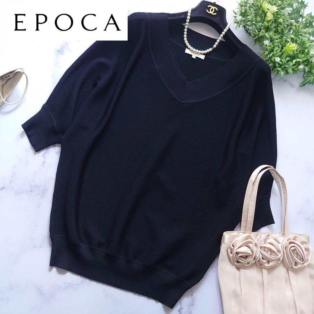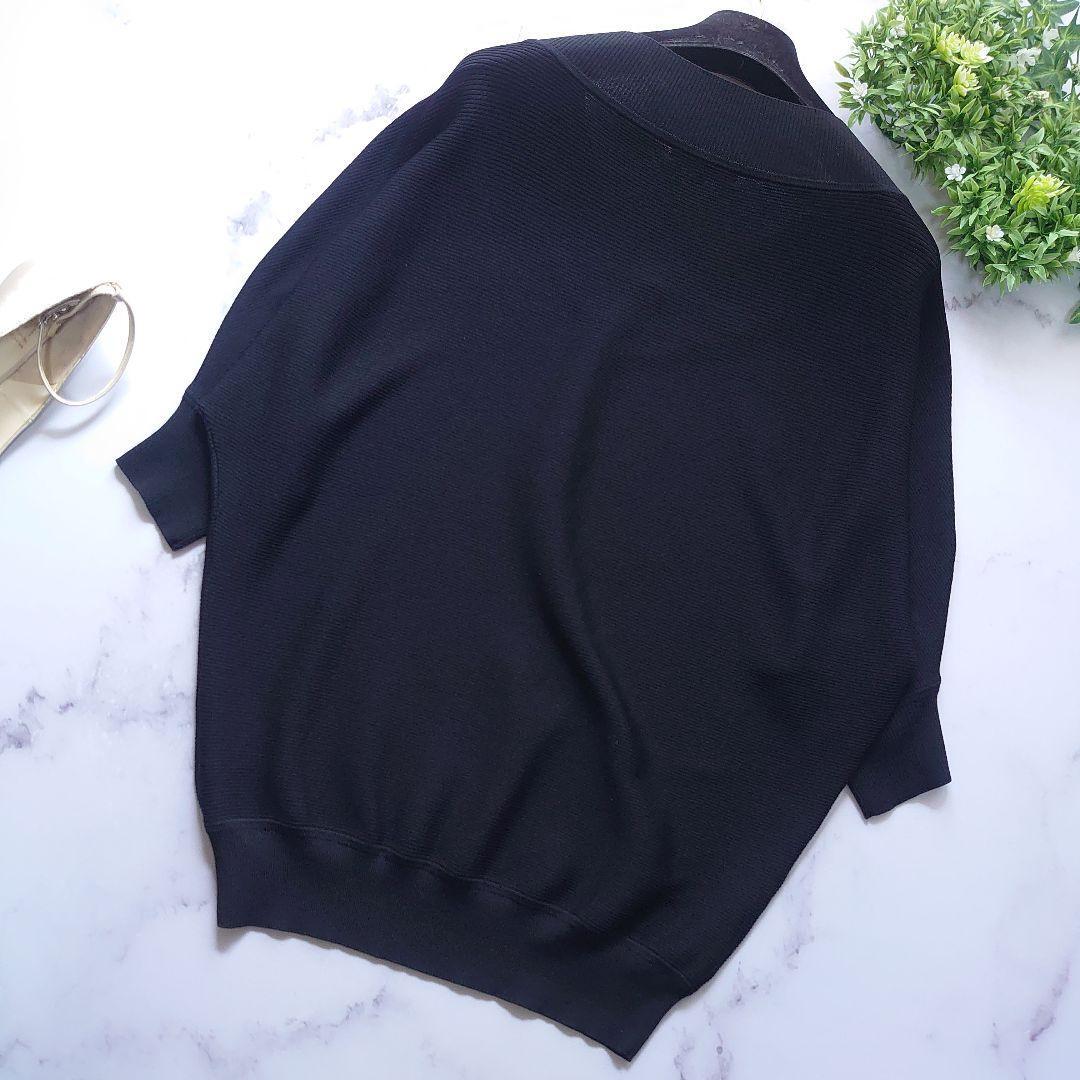 EPOCA エポカ La magliaプルオーバー リブ ニット ストレッチ Vネック ドロップショルダー ドルマンスリーブ 五分袖 黒 ブラック サイズ40 M セーター チュニック ブラウス カットソー トップス レディース