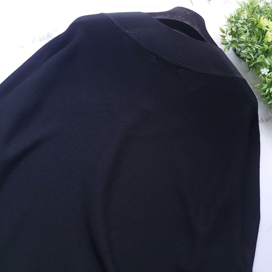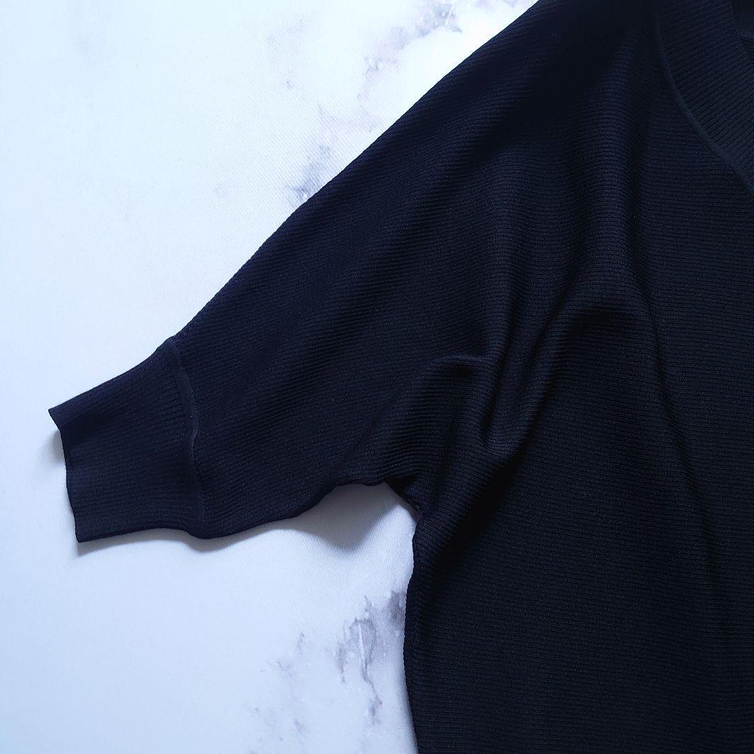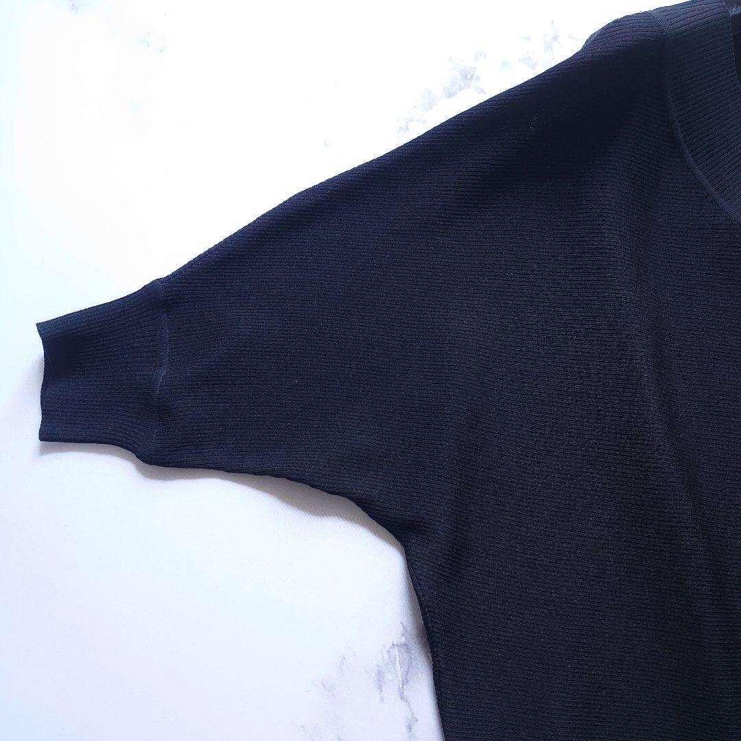 EPOCA エポカ La magliaプルオーバー リブ ニット ストレッチ Vネック ドロップショルダー ドルマンスリーブ 五分袖 黒 ブラック サイズ40 M セーター チュニック ブラウス カットソー トップス レディース
