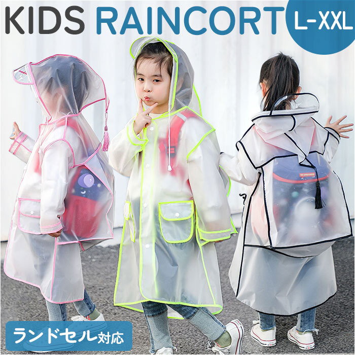 商品説明 | ・・【雨の日も楽しく!】 ・雨の日のお出かけや通学通園に便利なキッズ用レインコートが登場! ・【リュックを背負ったままでもOK】 ・コートの背中部分には、リュックやランドセルを背負ったまま着用できる背マチ付き。 ・【小さな子でも着脱簡単】 ・小さなお子様でも脱ぎ着がしやすい、スナップボタン仕様。 ・【前が見やすい透明窓付き】 ・フードのツバ部分には透明窓が付いているので、視界を遮る心配なし! ・【便利なポケット】 ・両サイドにはミニタオルなどが入れられるスナップボタン付きのポケットを配置。 ・【キュートなデザイン】 ・フードについたタッセルやパイピングがアクセント。コートと同じパイピングデザインの収納袋付き。 ・【選べるサイズ展開】 ・男の子も女の子も着られるLサイズからXXLサイズまで、ピッタリサイズがチョイス可能♪ |