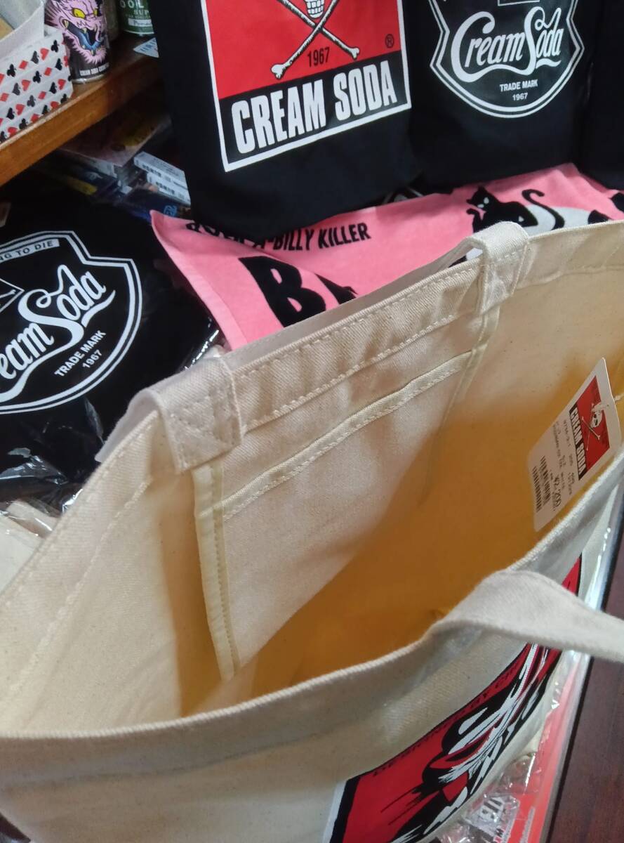 白色ティミートートバッグ!検索CREAMSODAクリームソーダロカビリーブラックキャッツマジックピンクドラゴン昭和レトロ80年代トートバック