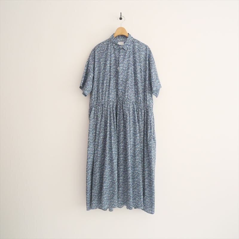 ■商品名  TOUJOURS / liberty blue flower  short sleeve classic gathered dress