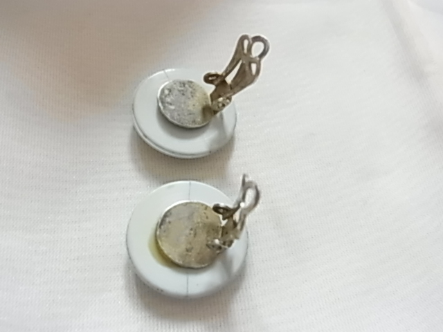 ビンテージ/ヴィンテージ 白藍色 しらあいいろトーン 円形 模様が素敵な印象 軽量 昭和レトロの素敵なイヤリング♪♪