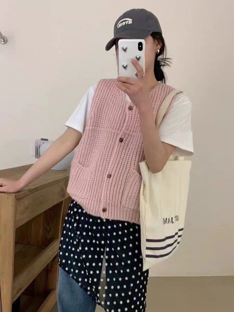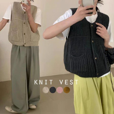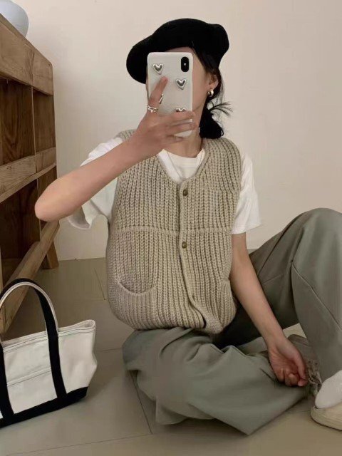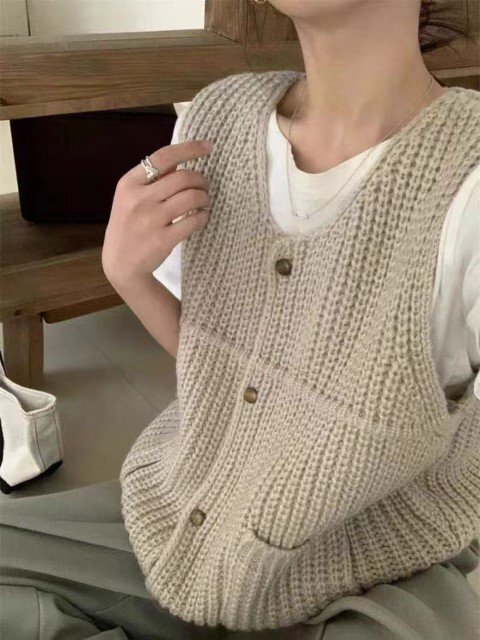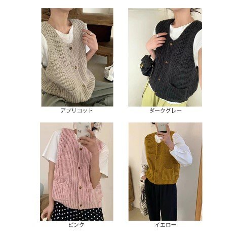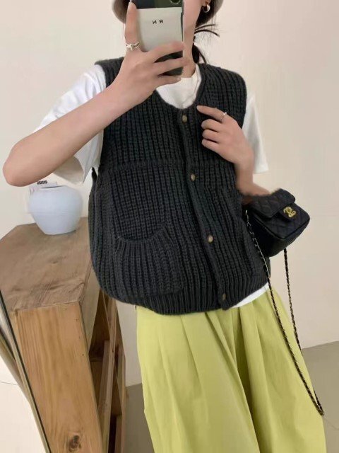 ・幅広いコーデが楽しめるニットベスト。いつものトップスに合わせるだけで雰囲気が一気に変わります。