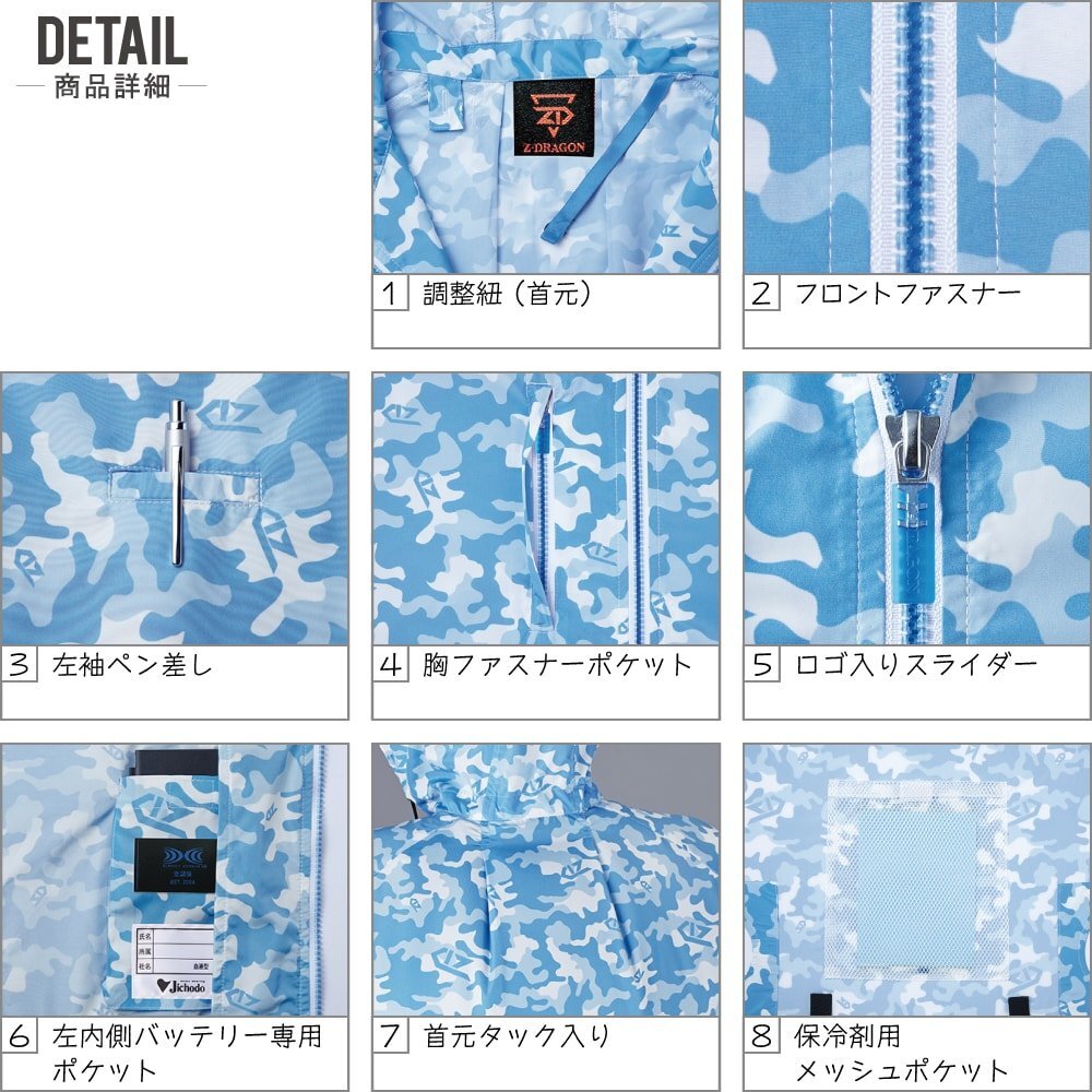 | 空調服説明 & 状態 & 素材 & サイズ & カラー 【画像参照】 | ■空調服 ≪説明≫ トレンドを掴んだカモフラ空調服 ≪状態≫ 新品・正規品 ≪素材≫ ポリエステル100% 高密度タフタ ≪特徴≫ ・調整ヒモ ・左袖ペン差し ・左内側バッテリーポケット ・胸ファスナーポケット ・保冷剤メッシュポケット ・首元タック入り ・袖口調整ボタン ・樹脂ボタン ・樹脂ファスナー ≪サイズ≫ タイトル名【 画像参照 】 ≪カラー≫ タイトル名【 画像参照 】 | セット 内容 | ■ファンセット ≪カラー≫ タイトル名【 画像参照 】 ≪内容≫ ・ファン×2 ・ケーブル×1 風量 7.2V設定時:24.4リットル/秒 6V設定時:21.1リットル/秒 5V設定時:18.4リットル/秒 3.3V設定時:12.9リットル/秒 ■:本商品の【 サイズ・カラー 一覧(服単品) 】 ■:本商品の【 フルセット(服+バッテリー+ファン) 】 ■:本商品の【 電池式セット(服+電池ボックス+ファン) 】 ■:本商品の【 ファンセット(服+ファン) 】 ■:本商品の【 大風量フルセット(服+大風量対応バッテリー+パワーファン) 】 ■:本商品の【 備品 一覧 】 □:綿100% 空調服 一覧 □:ポリエステル100% 空調服 一覧 □:フルハーネス 空調服 一覧 |