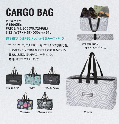 持ち運びに便利なメッシュ付きカーゴバッグ