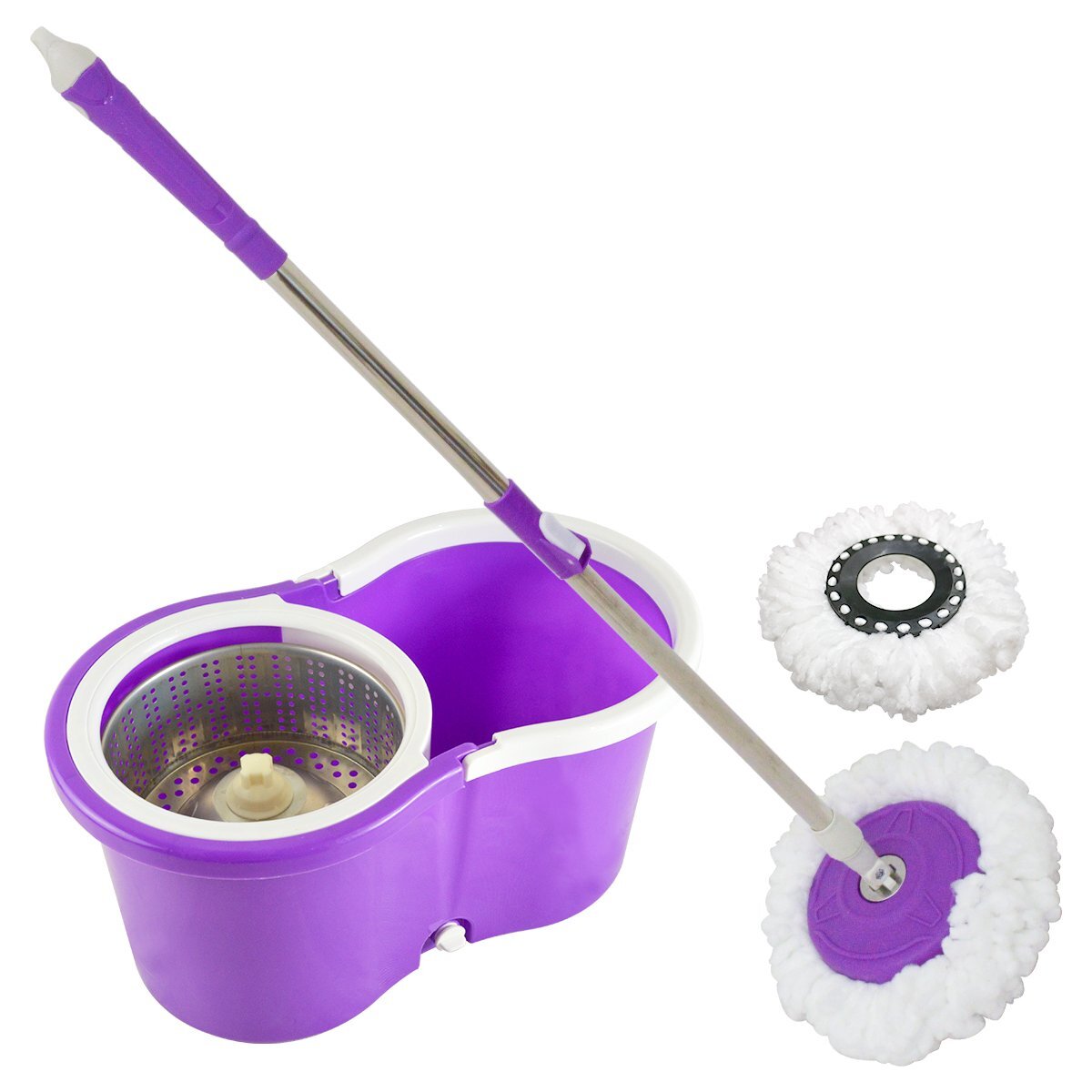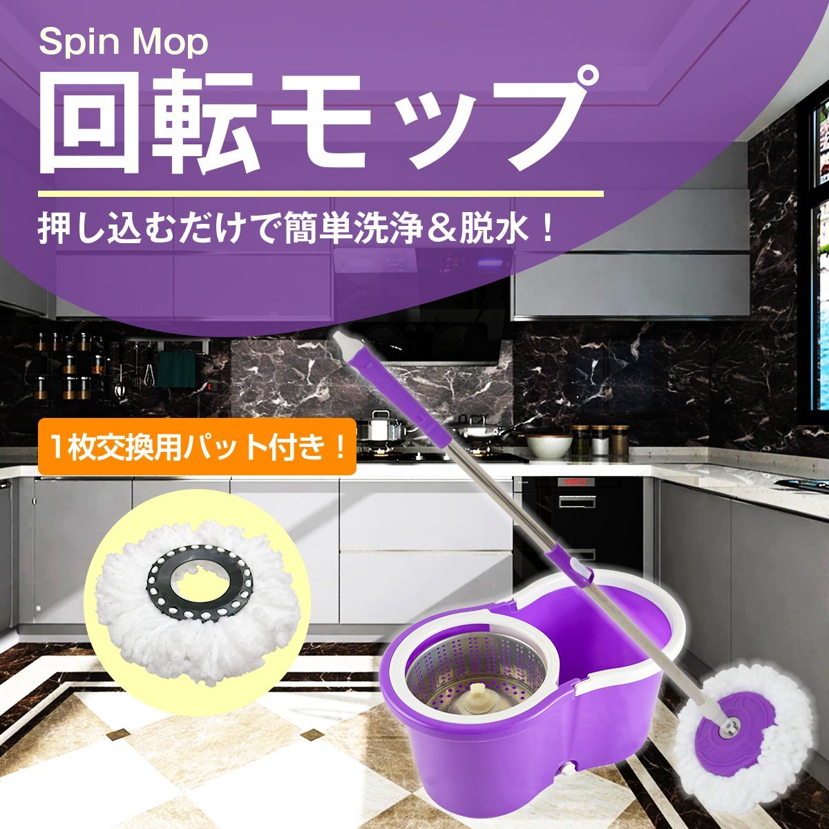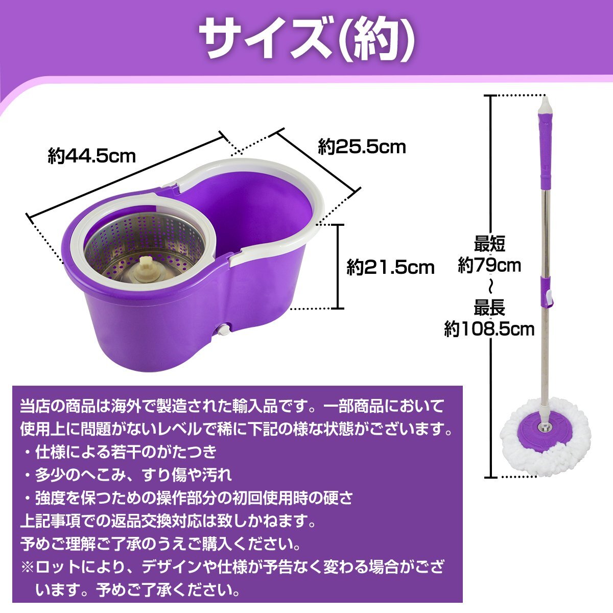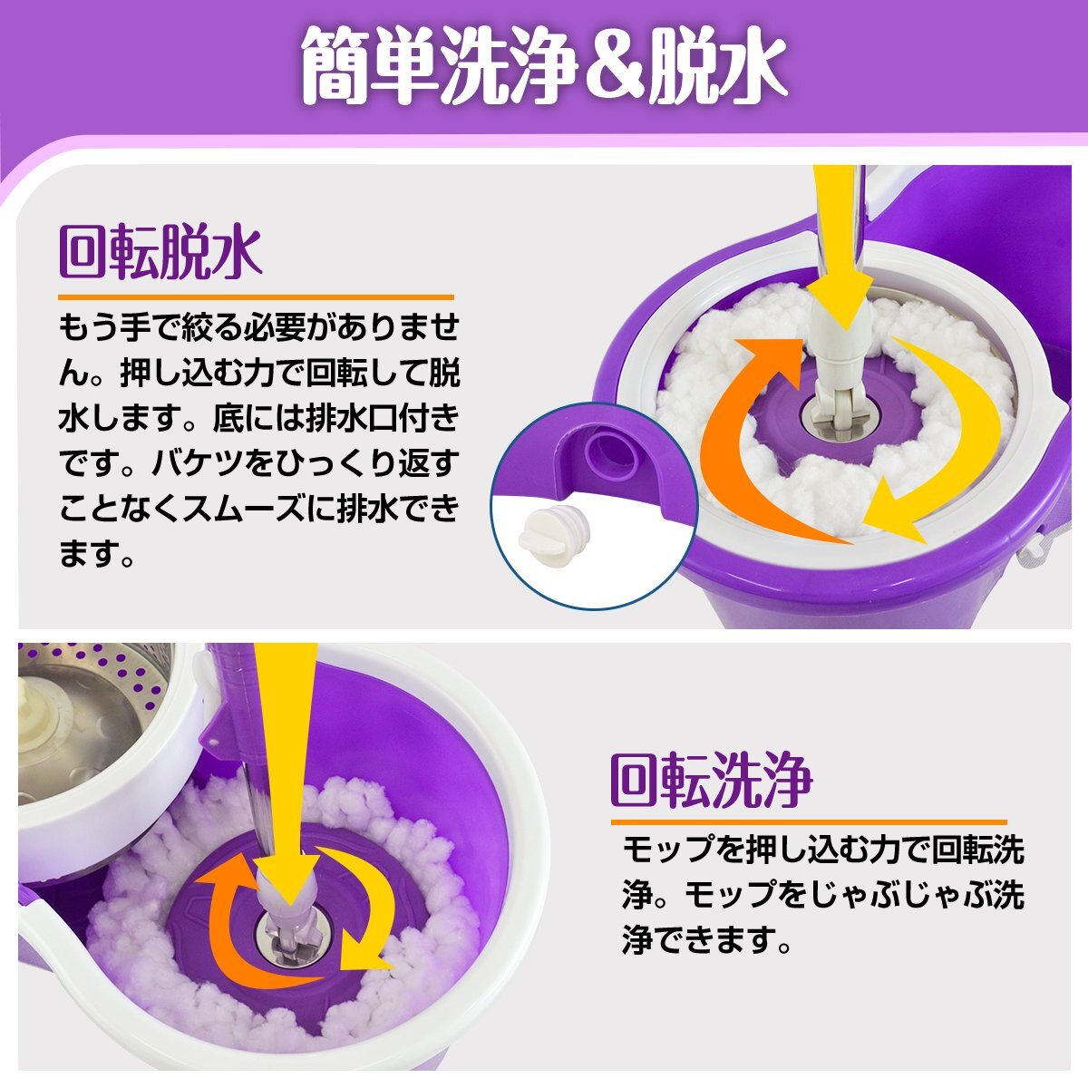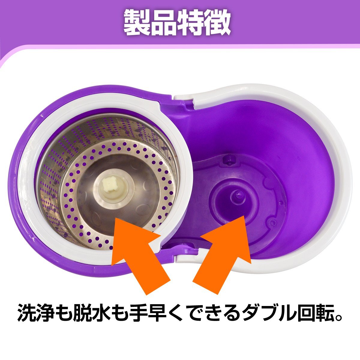 洗浄 脱水 ダブル 回転モップ ステンレス 脱水層 マイクロファイバー スピン モップ バケツ 床掃除 床拭き 雑巾 手回し 紫
