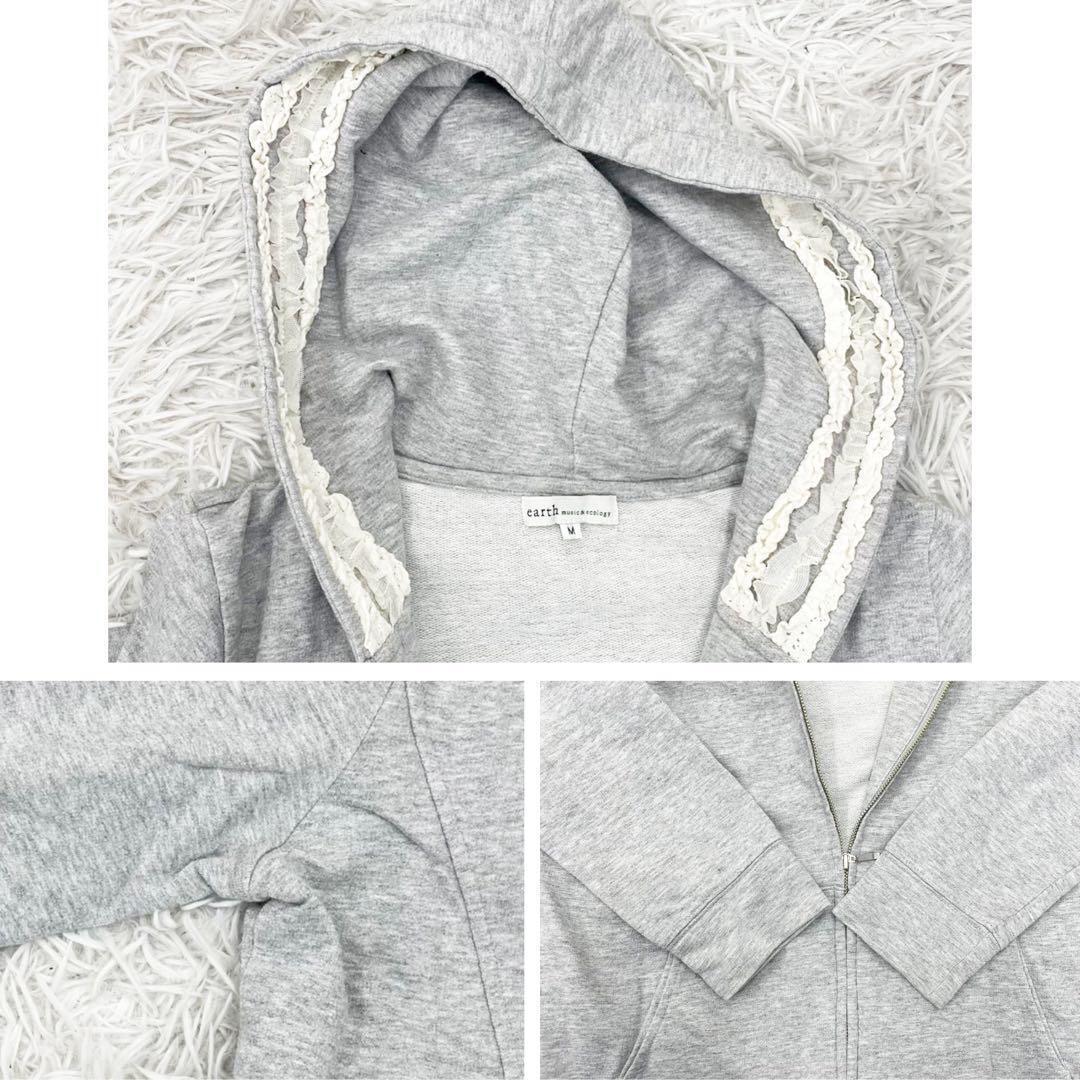 【A3657】 earth music&ecology アースミュージックアンドエコロジー パーカー フーディ Mサイズ グレー 長袖 ジップアップ フルジップ