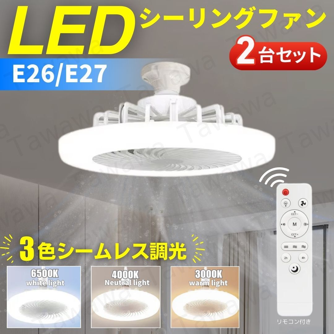 シーリングファンライト LED シーリングライト 2台セット 照明 サーキュレーター ファン ライト 調光 調風 静音 電球 蛍光灯 白色 E 26 27 | |||