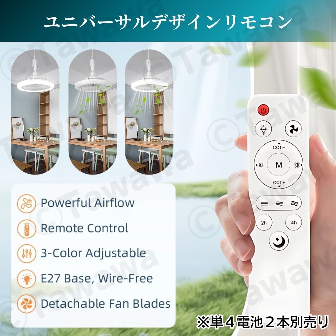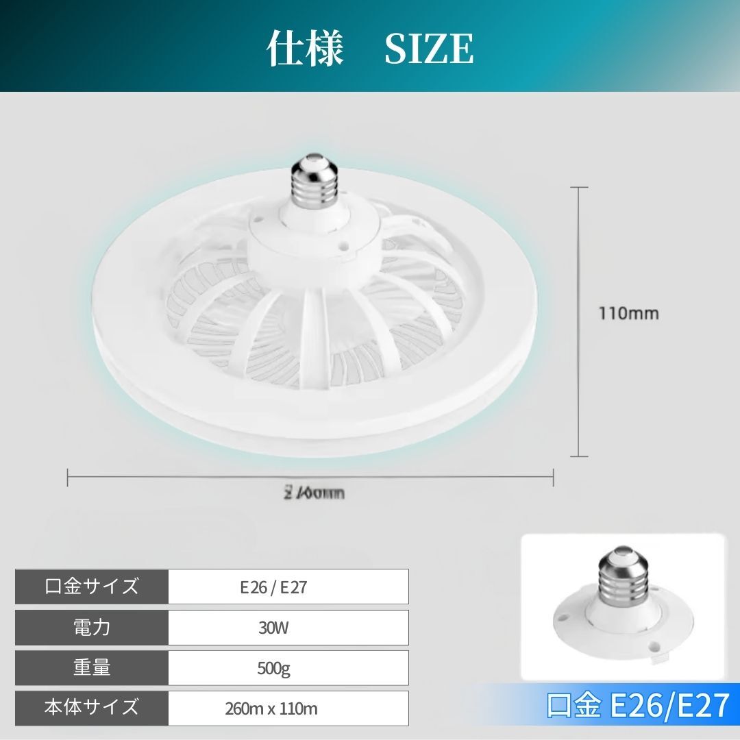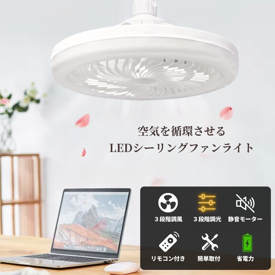 商品名:シーリングファンライト LED シーリングライト 2台セット 照明 サーキュレーター ファン ライト 調光 調風 静音 電球 蛍光灯 白色 ホワイト E 26 27 【商品説明】 ・LEDライト & シーリングファン一体型:オールシーズン活躍 空気循環で冷暖房効果アップ!! ・リモコン操作(調光調色・風量調節・ON/OFF・常夜灯・タイマー) ・角度調整可能 ・消音設計・工事不要:簡単取付(電球ソケットに回すだけ) ・調光 3段階:自然光 / 電球色 / 昼光色 ・風量 3段階:弱 / 中 / 強 ・消費電力 ライト:30W ファン:4W ・明るさ:最大2250ルーメン ・色温度:3000K~6500K ・対応口金(ソケット):E26 ・取付方法:電球用ソケットに回して装着 ※引っ掛けシーリングにお取り付けの場合、 角形引掛シーリングアダプター E26 対応を 別途ご用意ください。 【詳細情報】 2台セット サイズ:260mm x 110mm 重 量:500g 調光 3段階:自然光 / 電球色 / 昼光色 風量 3段階:弱 / 中 / 強 リモコン付き(単四電池2本 別売り) 状 態:新品・未使用品 ※輸送による箱の潰れがあります。 【配送方法】 お支払い確認後、 当日〜翌々日までに発送(月・水・金曜日発送) 発送後、概ね 翌日〜翌々日で到着(離島・沖縄除く) ゆうパック での発送です。 お手渡しの配達となります。 配達日時の指定は出来ません。 ご不在の場合は、不在票が投函されます。 期限内に再配達をご依頼ください。 ※簡単な梱包でのお届けとなります。 ・説明文や商品写真のコピー・転載はお止め下さい! | |||