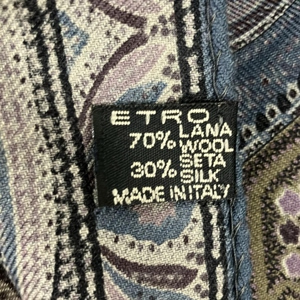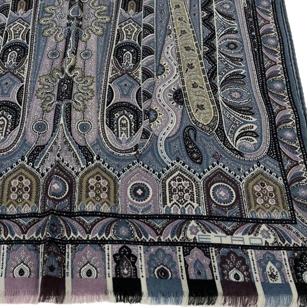 エトロ ETRO ストール(ショール) - ウール、シルク ブルーグレー×パープル×マルチ ペイズリー柄 マフラー