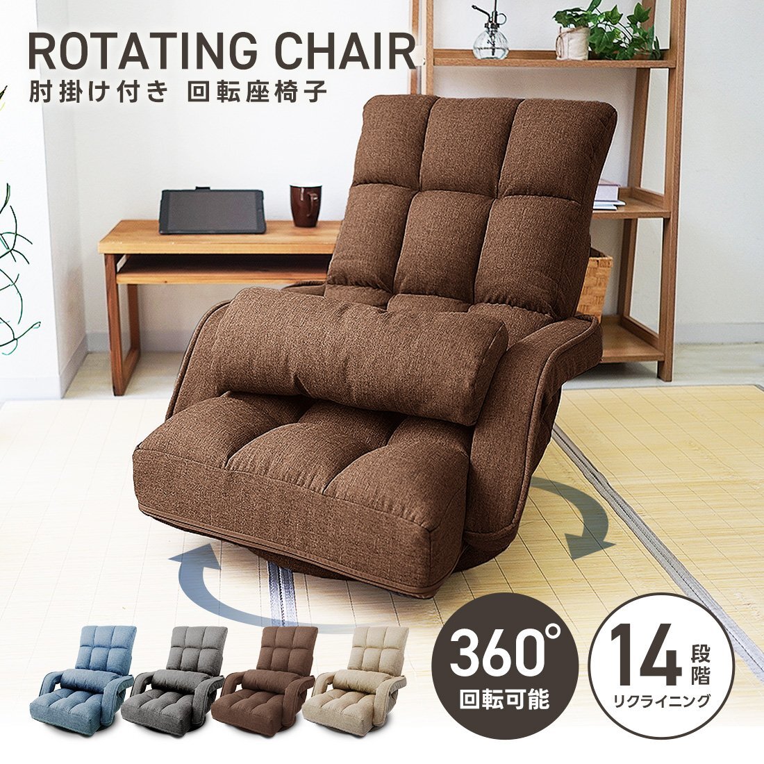 \大人気!肘掛け付き座椅子に回転式登場/ 座面が360°回転する肘掛け付き座椅子です。 席を立たずに体の向きを自由に変えられ、好きな角度で立ち座りできます! 14段階のリクライニングで細かく調整でき自分好みにできます! 肘掛けはリクライニング連動するので、どんな姿勢でも邪魔になりません。 大事な内部ギアは品質・耐久性に優れた日本メーカー「KoYo」製で安心してご使用いただけます。 厚みのある3層構造でクッション性抜群で、長時間座っていても快適です! フラット状態にすればお昼寝にも最適です♪ 【商品仕様】 カラー:ダークブラウン 素材:麻リネン布、ウレタンスポンジ、銅管 重量:(約)10.5kg サイズ(約) 外寸:幅50x奥行57x高さ70cm フラット時:全長165cm 座面厚み:21cm 収納時:幅50×奥行57x高さ35cm (ハイバック座椅子 折りたたみ座椅子 高座椅子 一人掛けソファ フロアチェア ソファ チェア ソファー チェアー カウチソファ 椅子 イス いす 回転 連動肘つき 肘掛け 14段階 腰痛対策 かわいい 人気 おすすめ WEIMALL) |