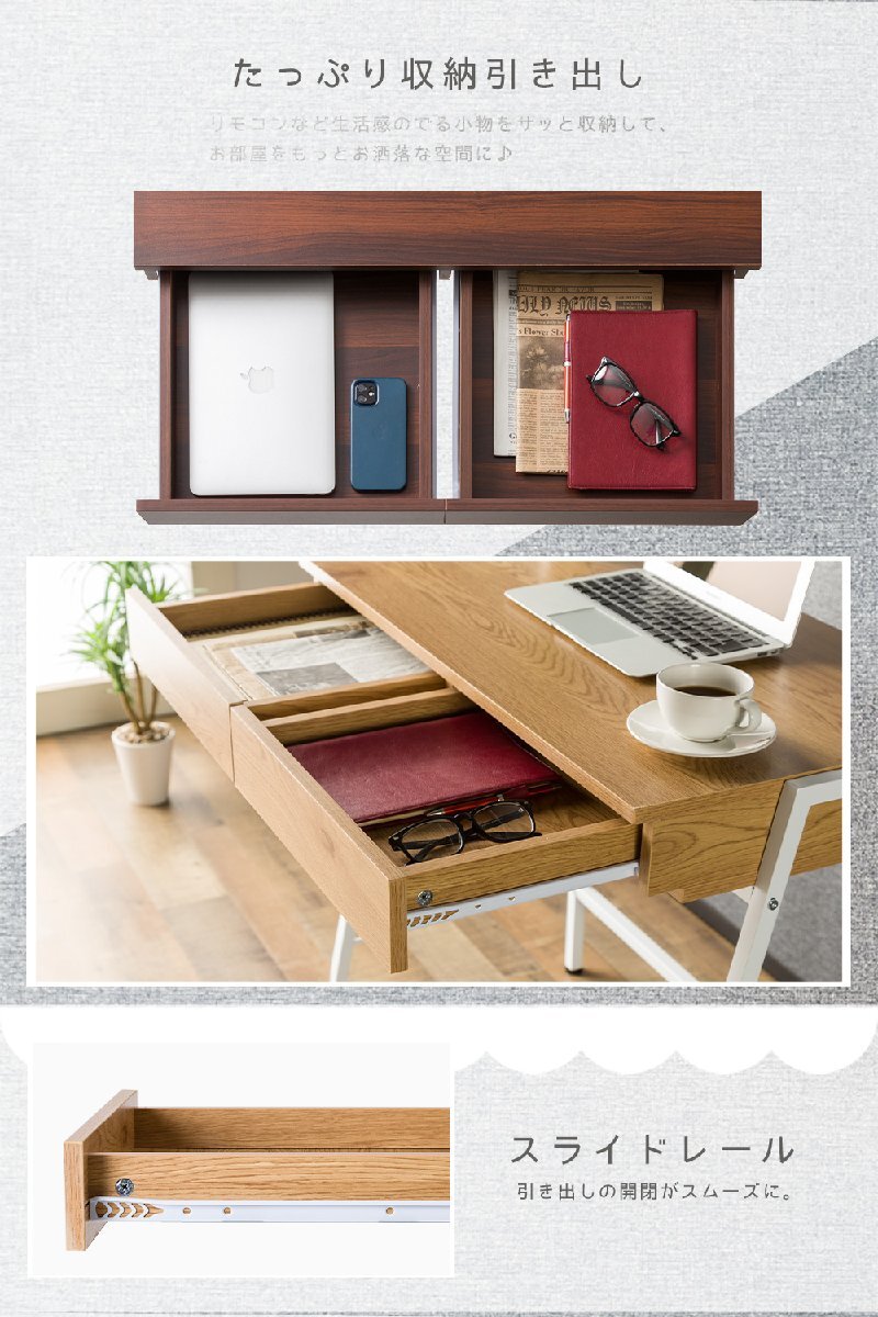 引き出し2杯付き コンパクトなデスク 省スペース 幅84cm 奥行45.5cm パソコンデスク 木製 アジャスター付き 簡単組立