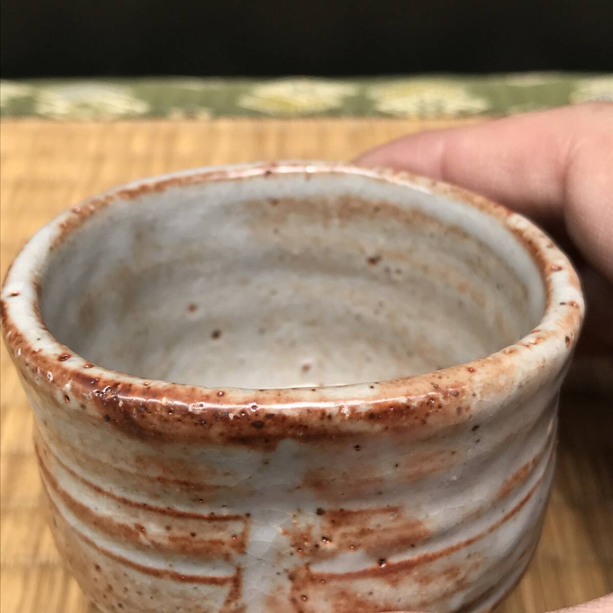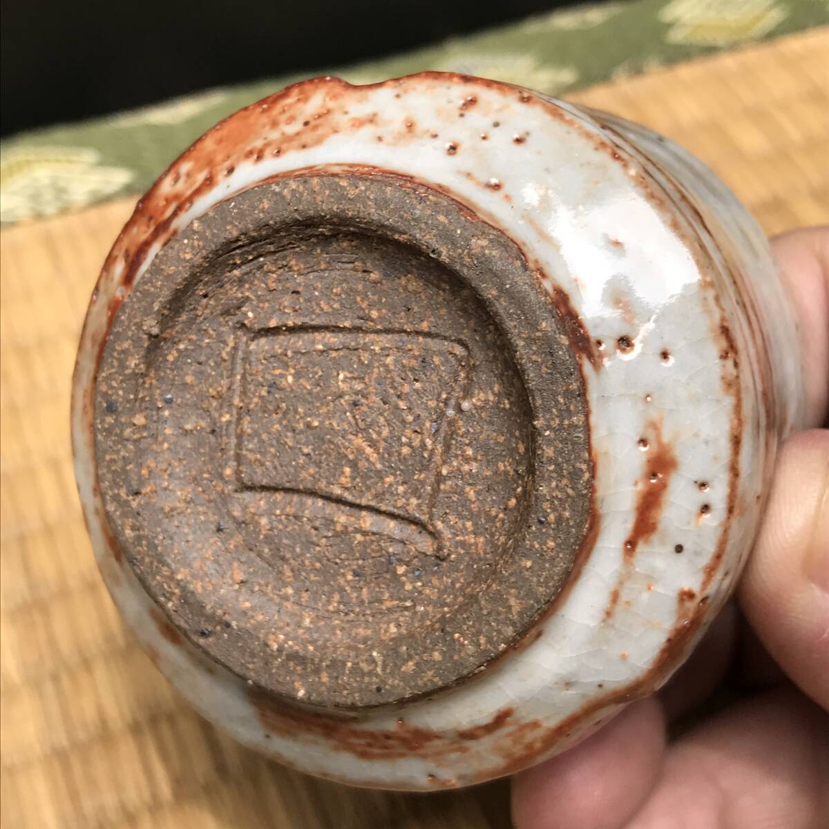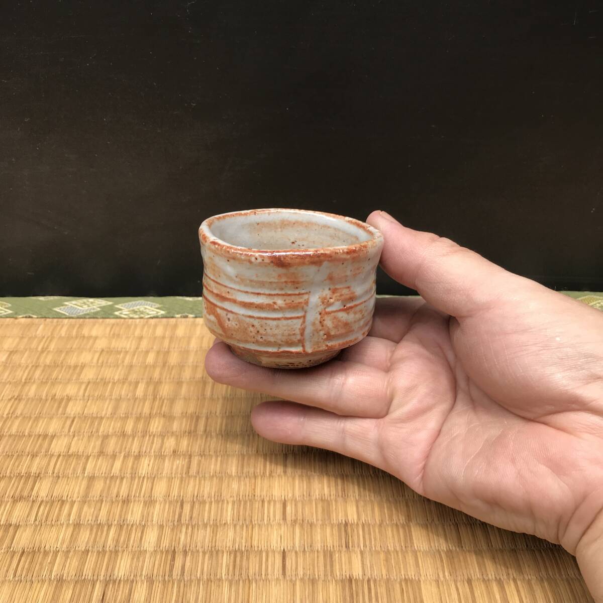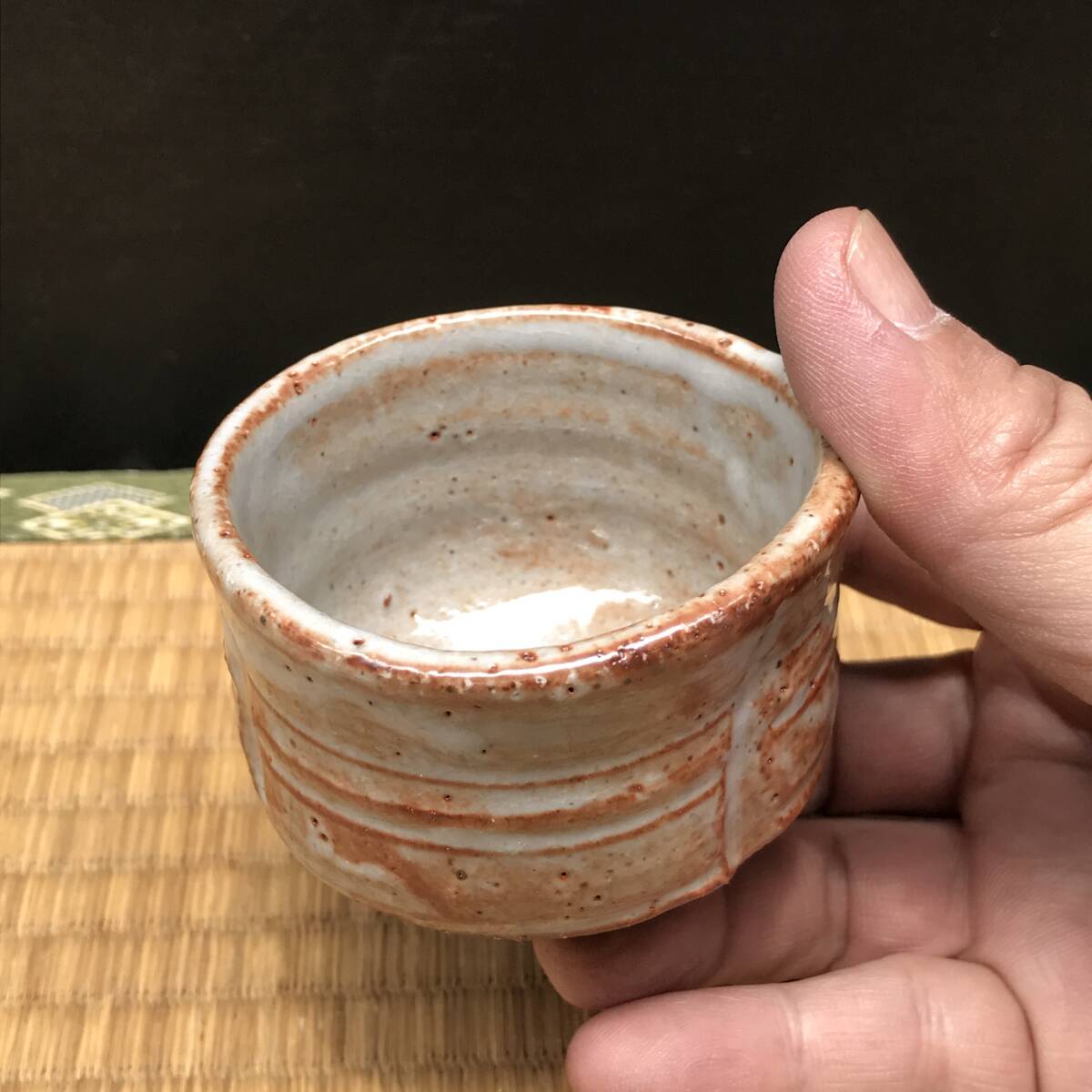 ねずみ志野のぐい呑み(ロ)魯山人銘印?酒器 猪口 小鉢 盃 杯 珍味入れ(R70527_A)