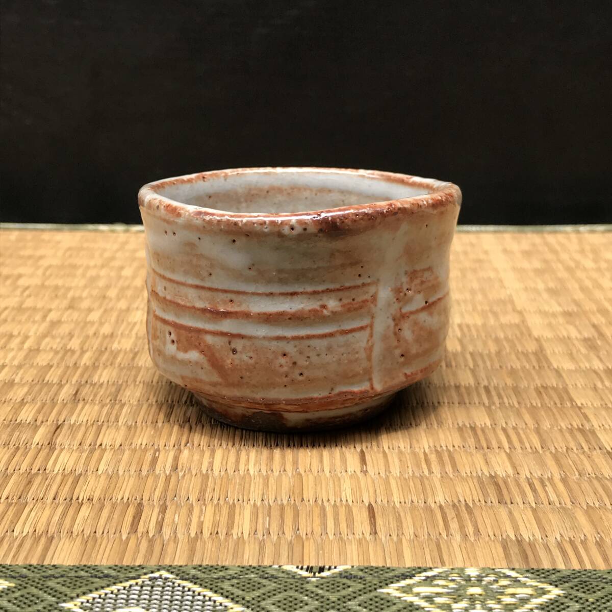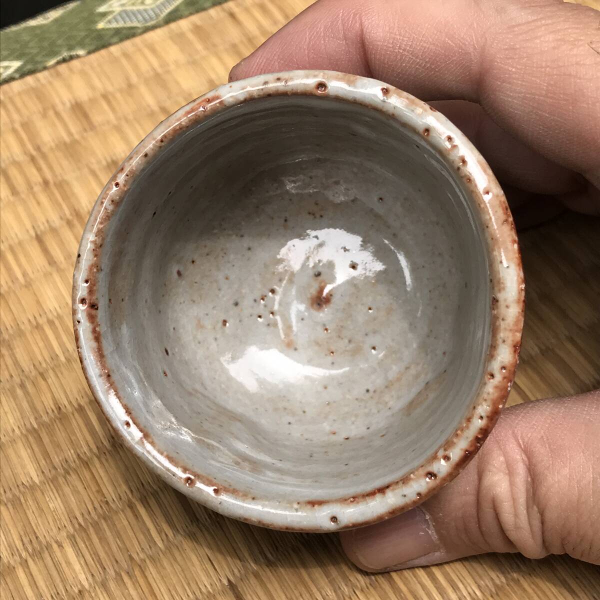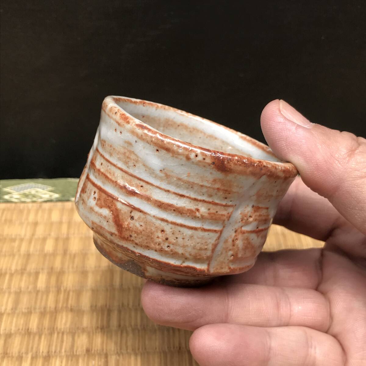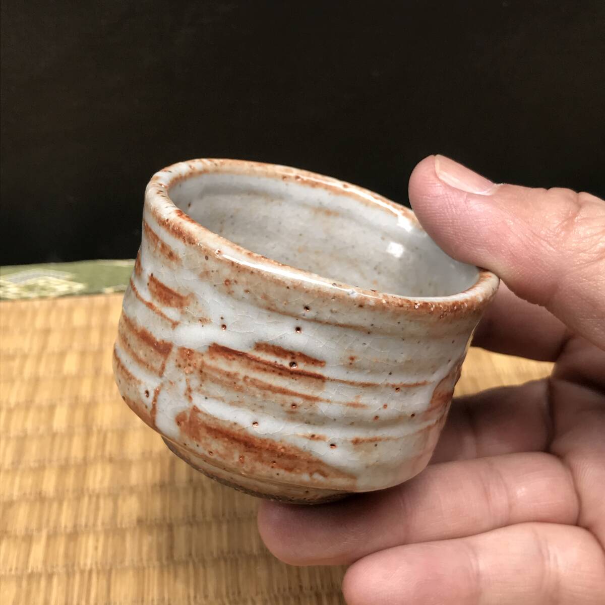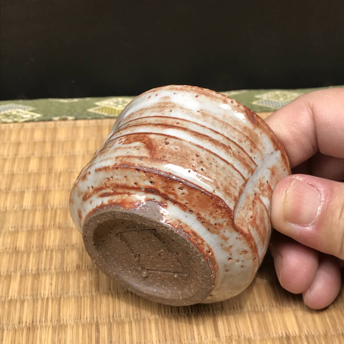 ねずみ志野のぐい呑み(ロ)魯山人銘印?酒器 猪口 小鉢 盃 杯 珍味入れ(R70527_A)