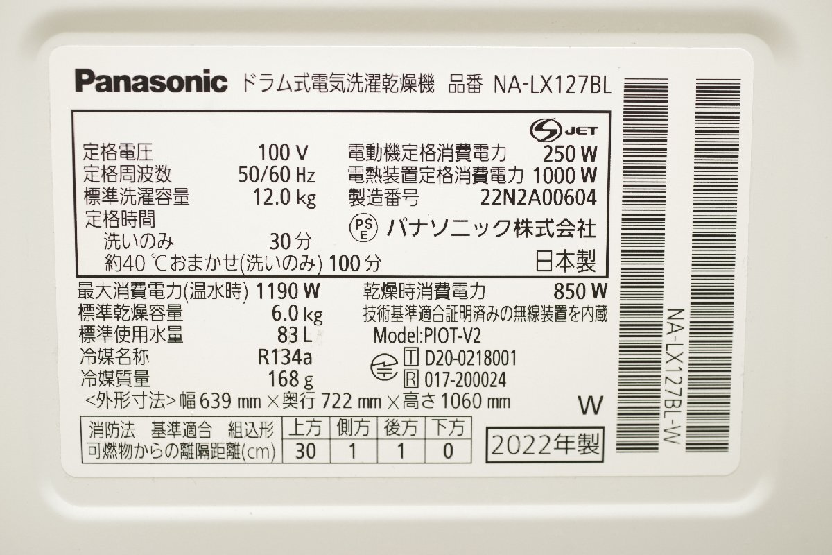 【商品紹介】 パナソニックよりドラム式洗濯機 NA-LX127BLのご紹介です。 ●仕様 ・型番:NA-LX127BL ・年式:2022年製 ・電源;100V(50/60Hz共用) ・容量:洗濯12kg / 乾燥6kg ・標準使用水量:洗濯83L / 洗濯~乾燥55L ・消費電力:1190W ・重量:約82kg ●主な機能 ・洗剤、柔軟剤、おしゃれ着洗剤の「トリプル自動投入」 ・温水洗浄 ・スチームでシワとり・消臭コース ・スマホで洗濯 ・取り忘れアラーム 付属品は掲載写真に写っているものが全てです。台車は付属しませんのでご注意ください。 発送時は固定ボルトを取り付けて発送させていただきます。到着後、背面の輸送ボルトを取り外してご使用ください。 下記送料には設置料金が含まれておりません。設置をご希望の場合はオプション扱いとなり、現地で別途オプション料金が発生いたします。予めご了承下さい。 この機会に是非ご検討くださいませ。 【商品状態】 中古品、使用品です。 取り外し可能なパーツは全て取り外し、分解クリーニングをしております。 パッキンに一部清掃で落としきれない染み付きがございましたが、脱水カバーや洗濯槽などは綺麗な状態で、まだまだ気持ちよくお使いいただける状態かと思います。 外観にも目立つようなダメージはございません。 クリーニング後の各パーツの写真も撮影しておりますので、掲載写真をご確認の上、ご検討くださいませ。 動作確認済です。 洗濯~脱水~乾燥までの機能の確認をしております。 スマートフォン連携等の細かな機能に関しては確認しておりませんので、予めご了承くださいませ。 この他にも商品を多数出品しておりますので、こちらから御覧下さい。 | ||