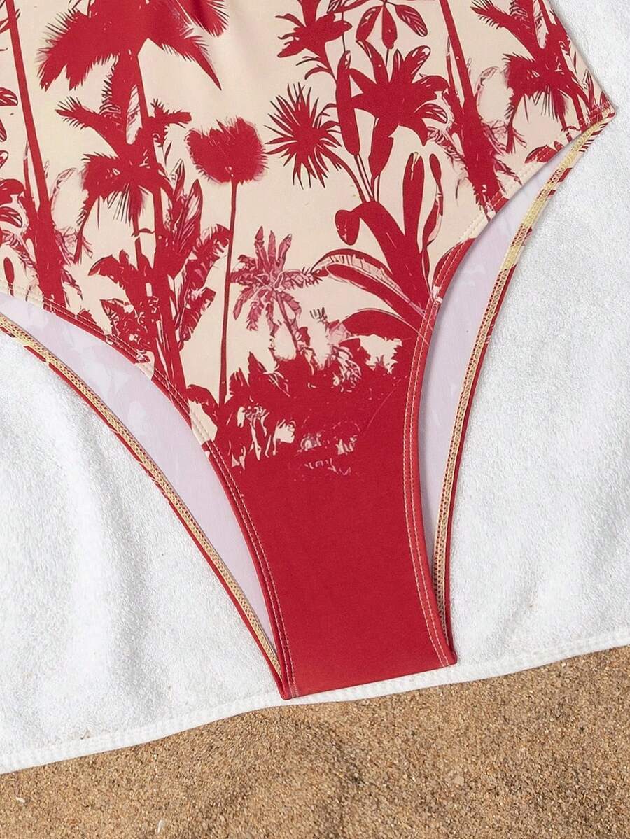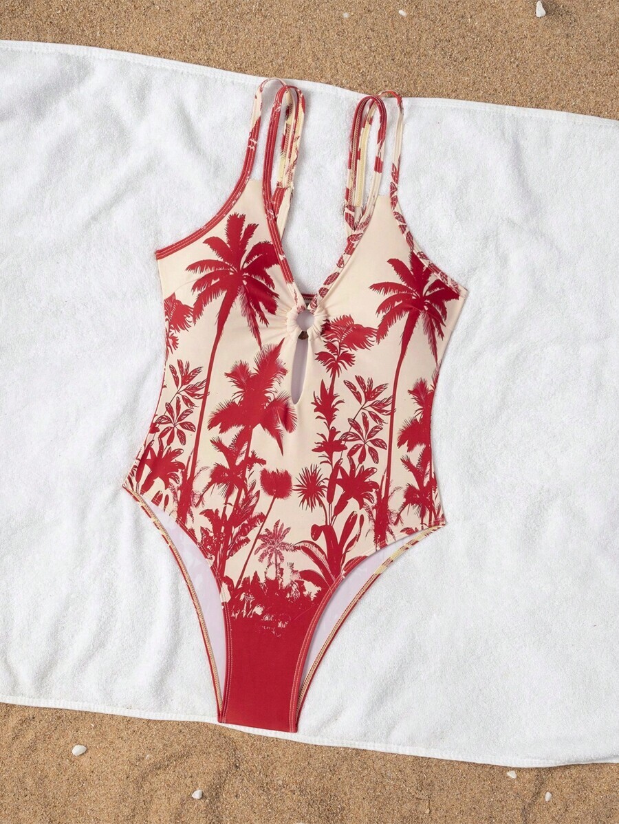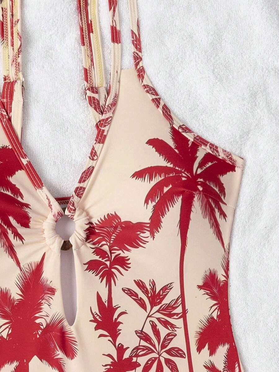 レディース 水着 ワンピース 熱帯のヤシの木プリント バックレス ワンピース水着 アジャスタブル ショルダーストラップ、スリムライ
