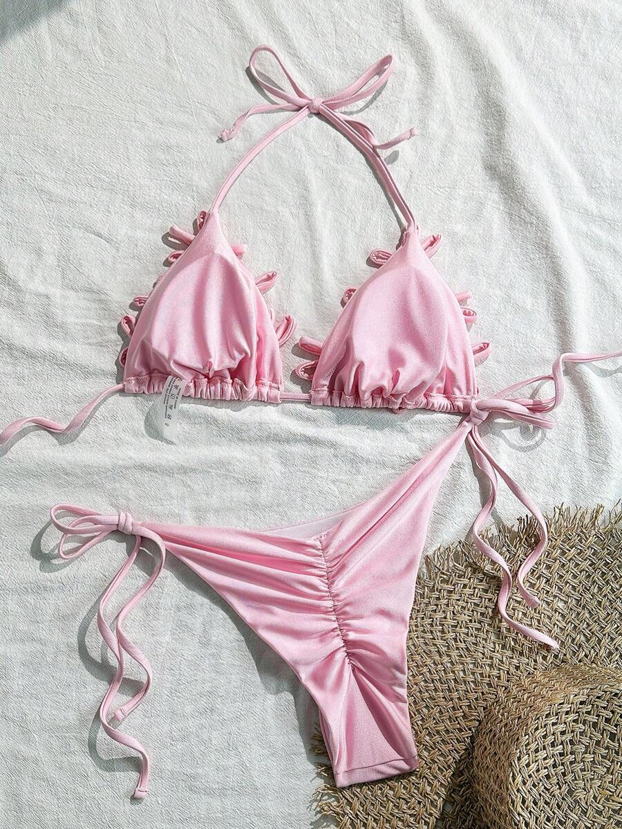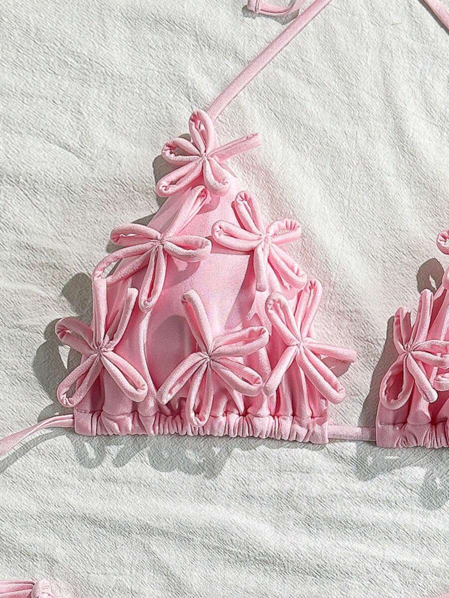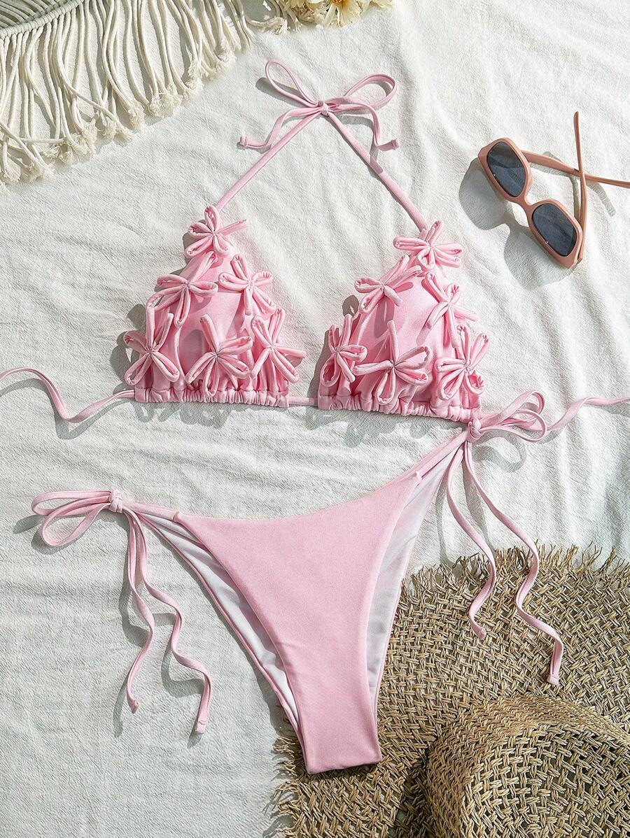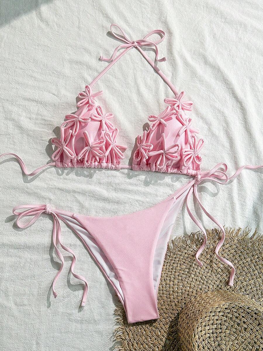 レディース 水着 ビキニセット ファッショナブルな優雅な3Dフラワー飾りビキニセット