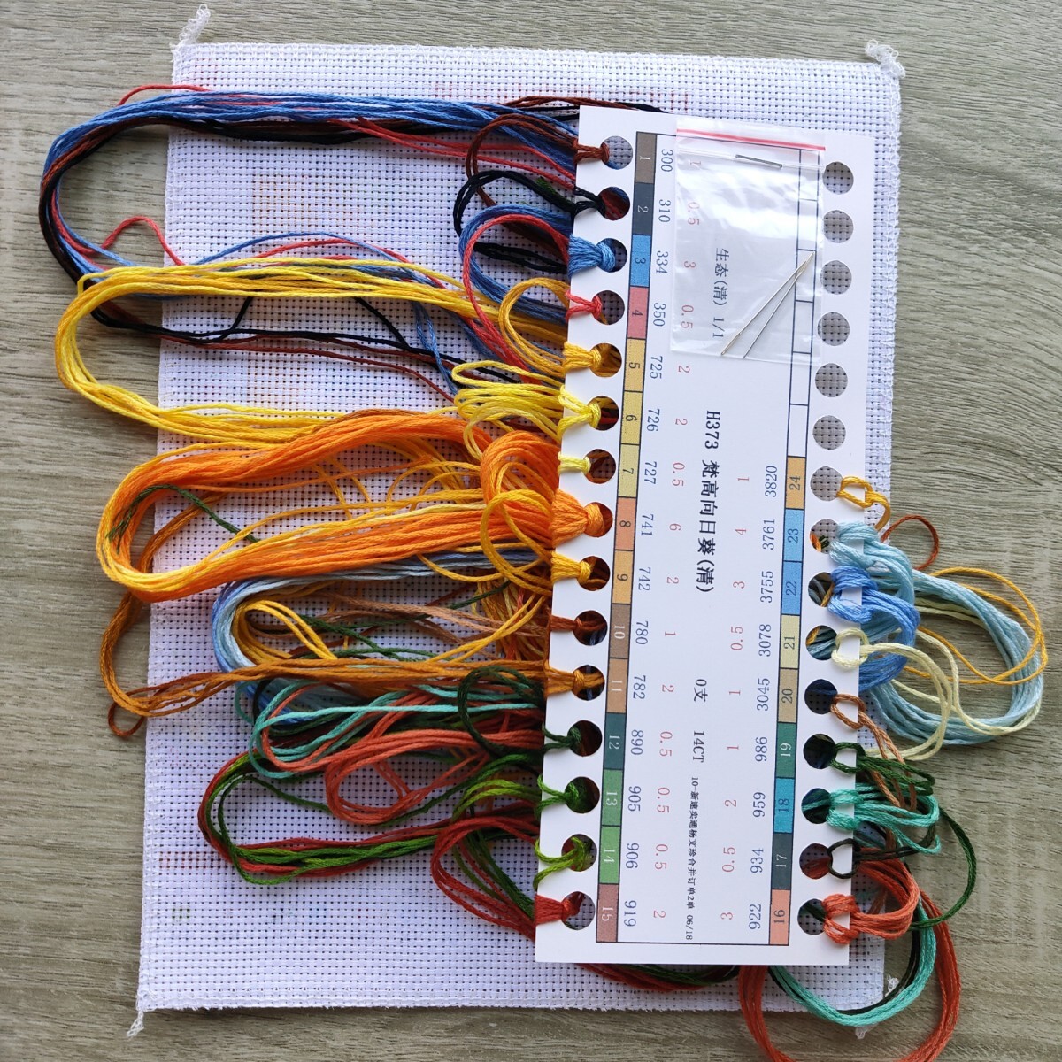 刺繍糸は余分に見積もって入っていますが、製作中もし足りなくなった場合は、ご自身でご用意ください。DMCの糸番号に対応しています。検品のため1度開封しています。
