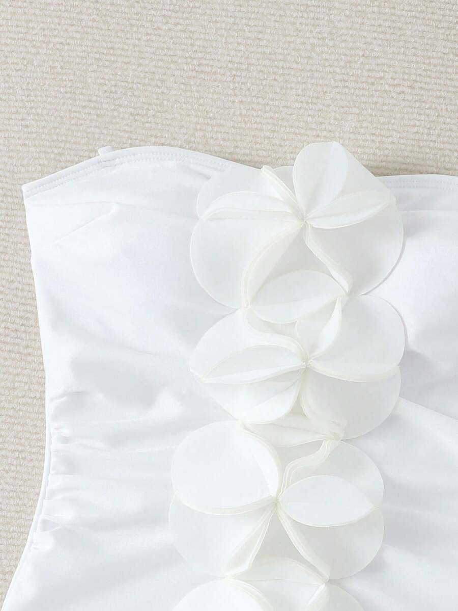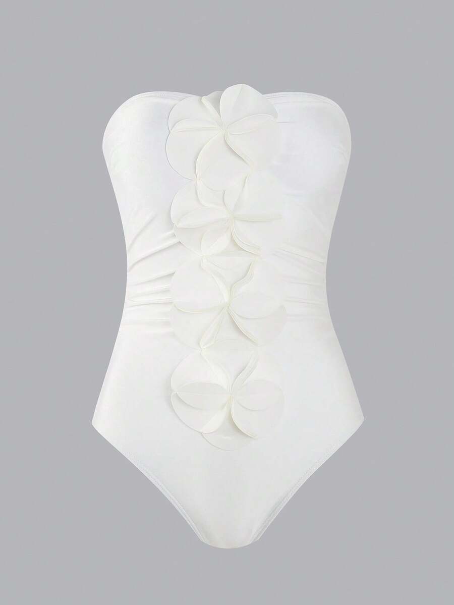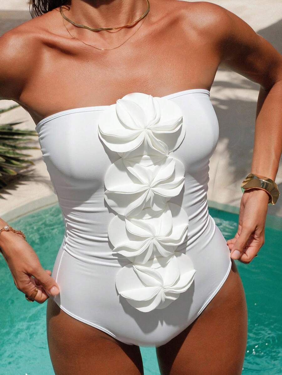 レディース 水着 ワンピース 2025年夏新作 レディース水着 ビーチ 3Dフラワー 休暇 独立記念日 無地 ストラップレス バッ