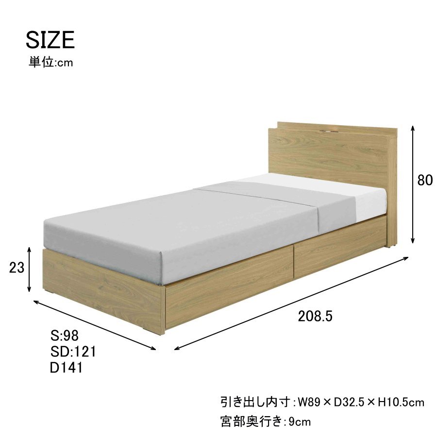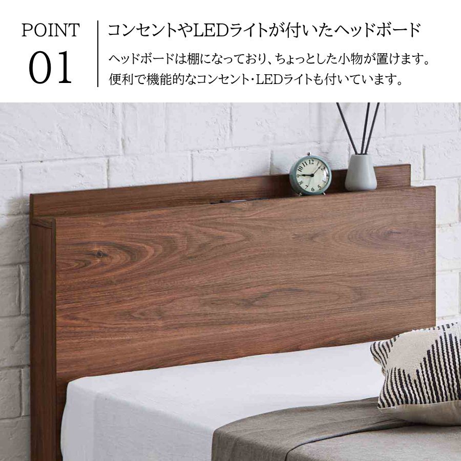 | ◆ 商品名 | LEDライト・コンセント・収納付きセミダブルベッド フレームのみ 16S |