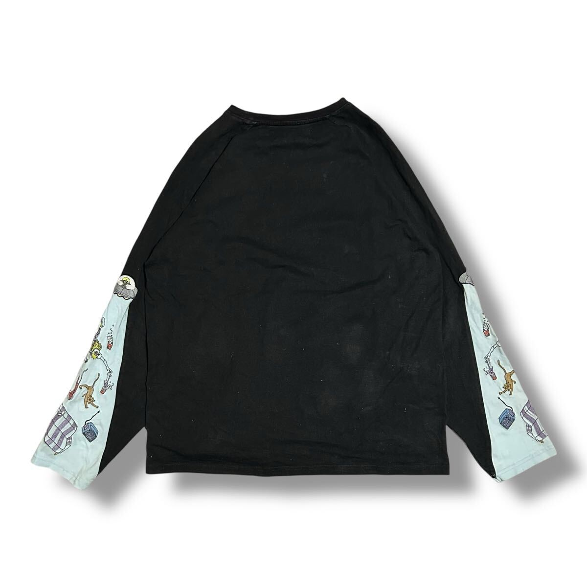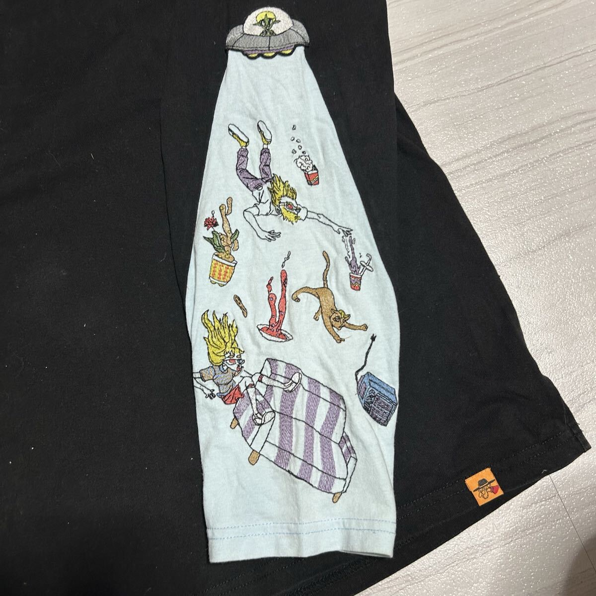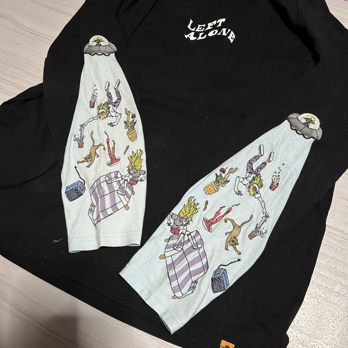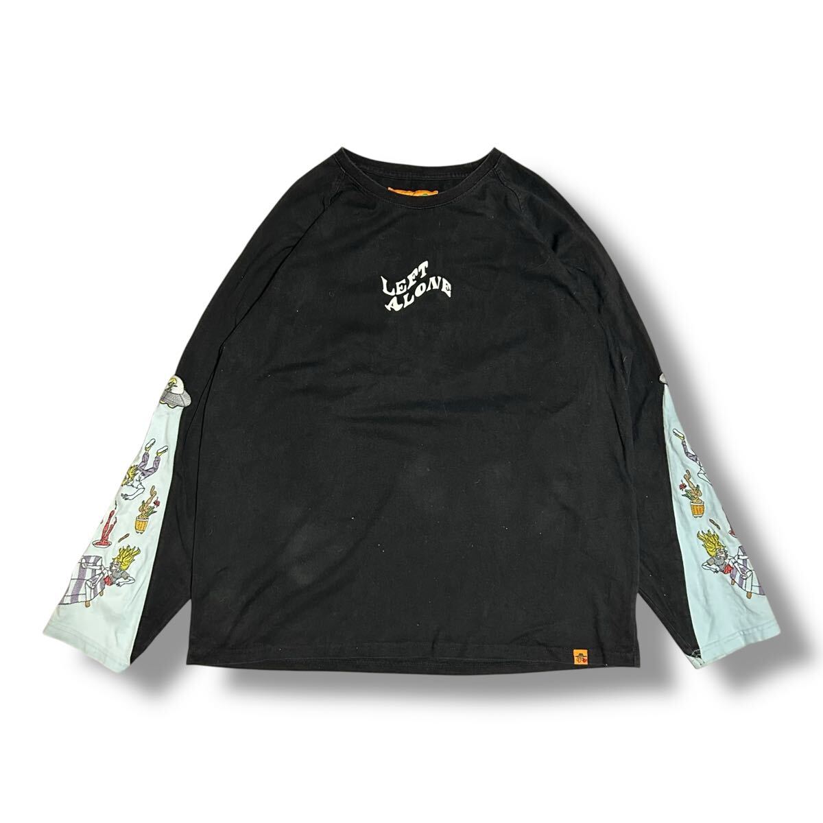 0910MS LEFTALONE レフトアローン 長袖Tシャツ ロングTシャツ ロングスリーブTシャツ ロンT UFO 刺繍 ラグランスリーブ ブラック M