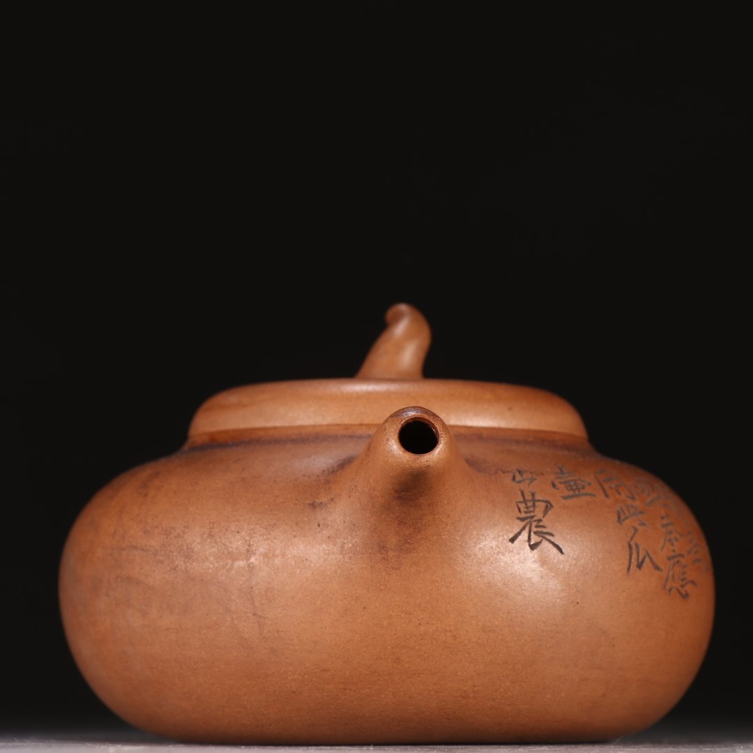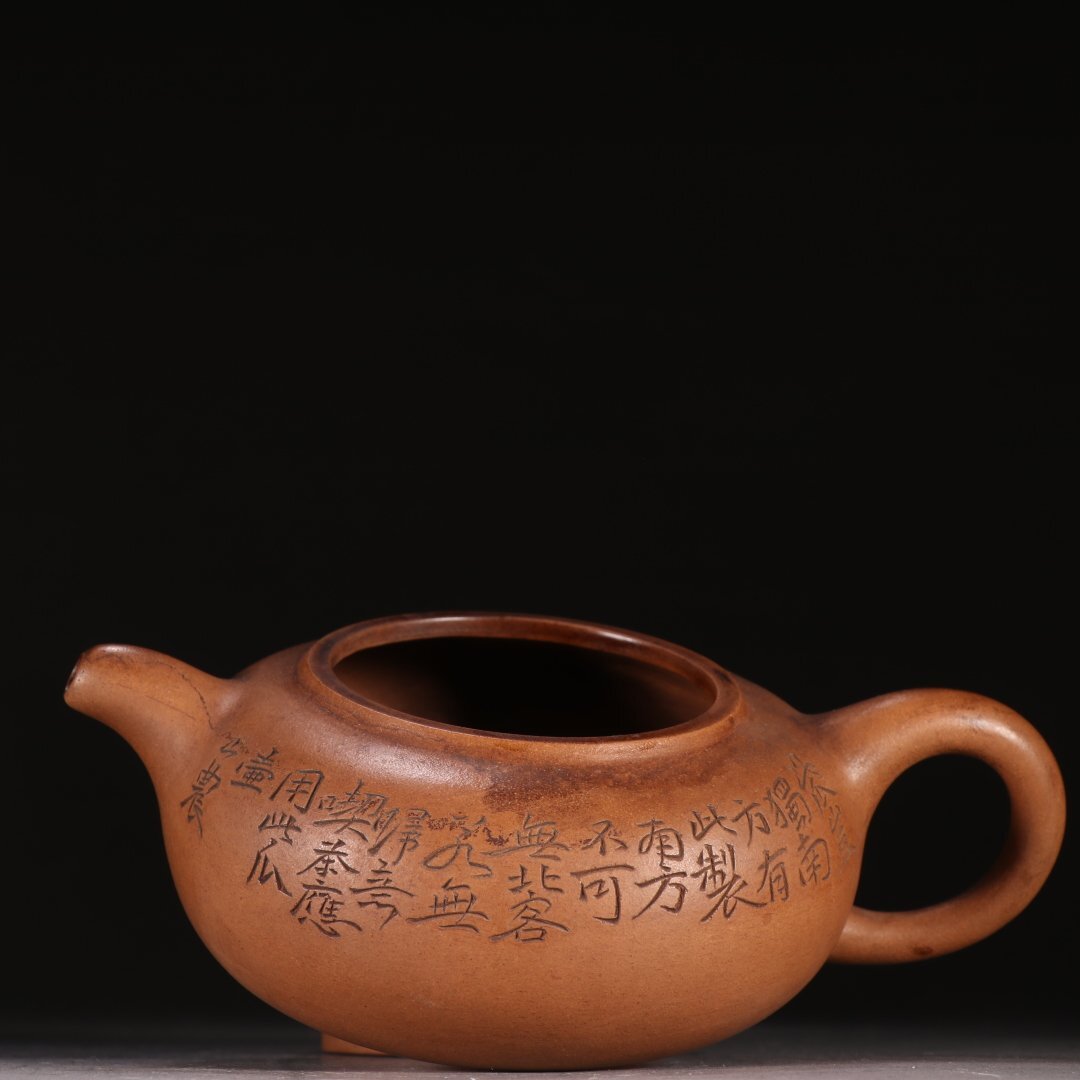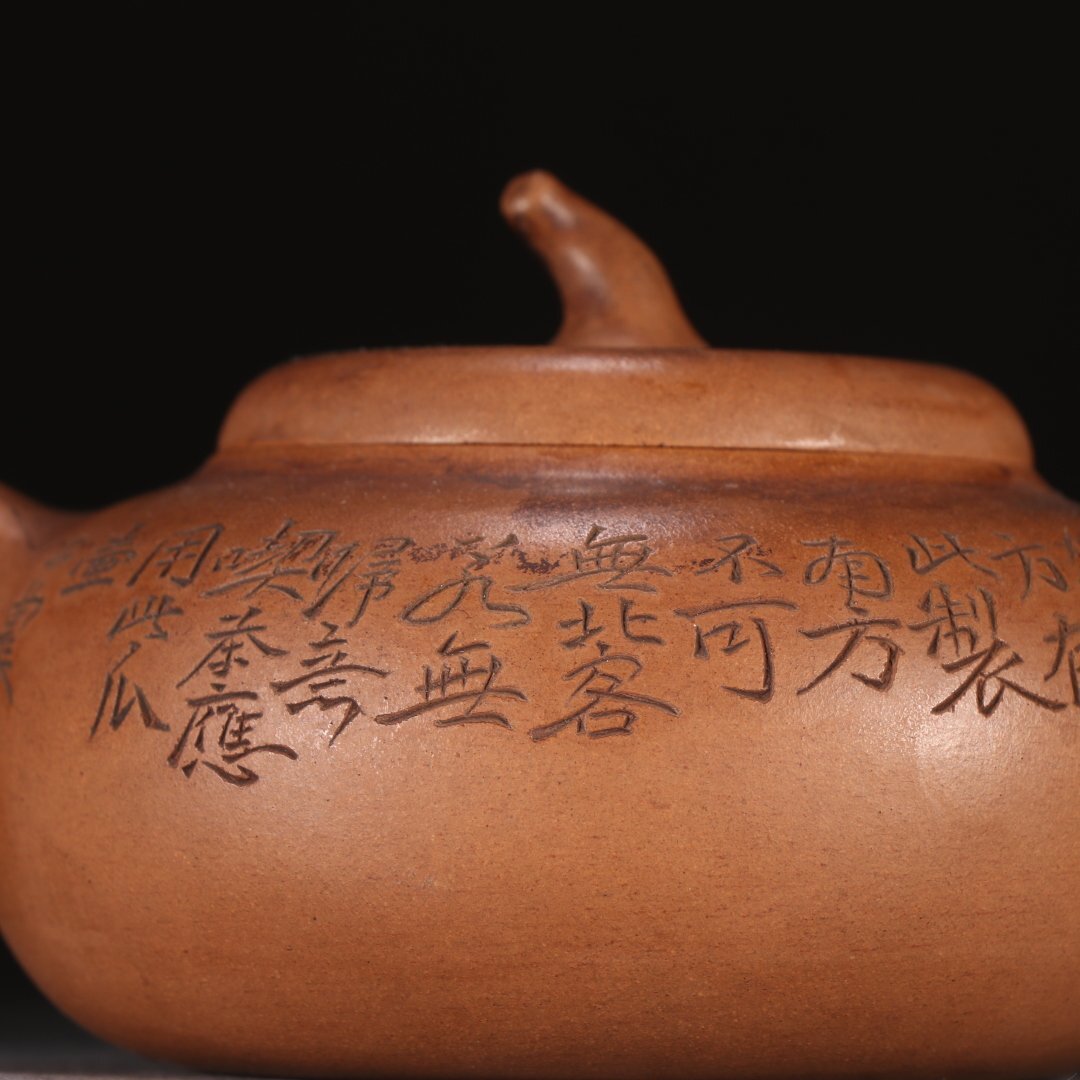 【安】清時代 園林底款 漢詩紋扁瓜茶壺 宜興紫砂 常滑 朱泥急須 煎茶道具 茶壷 古美味 古董品 時代物 288 サイズ(約寸) |