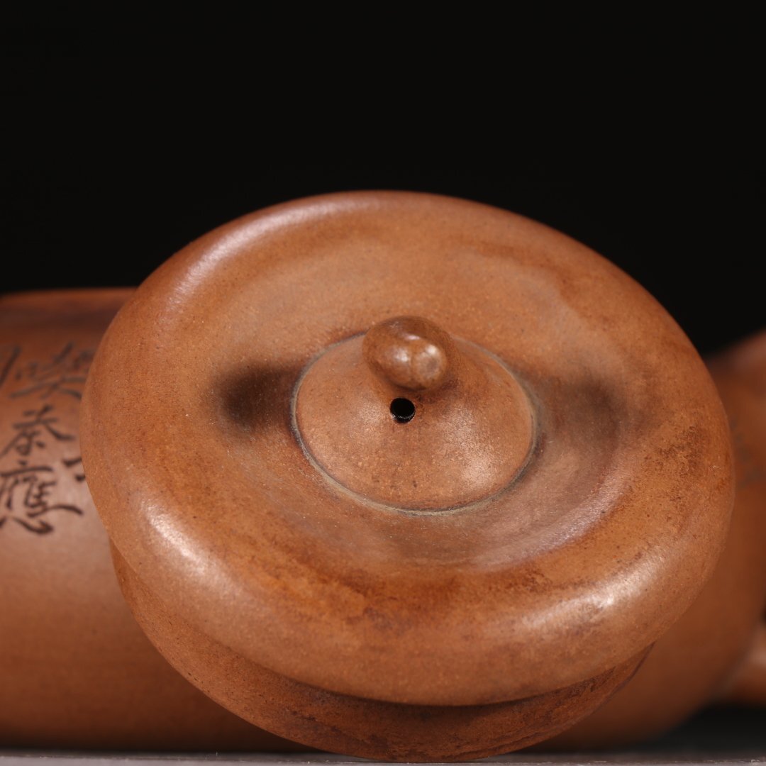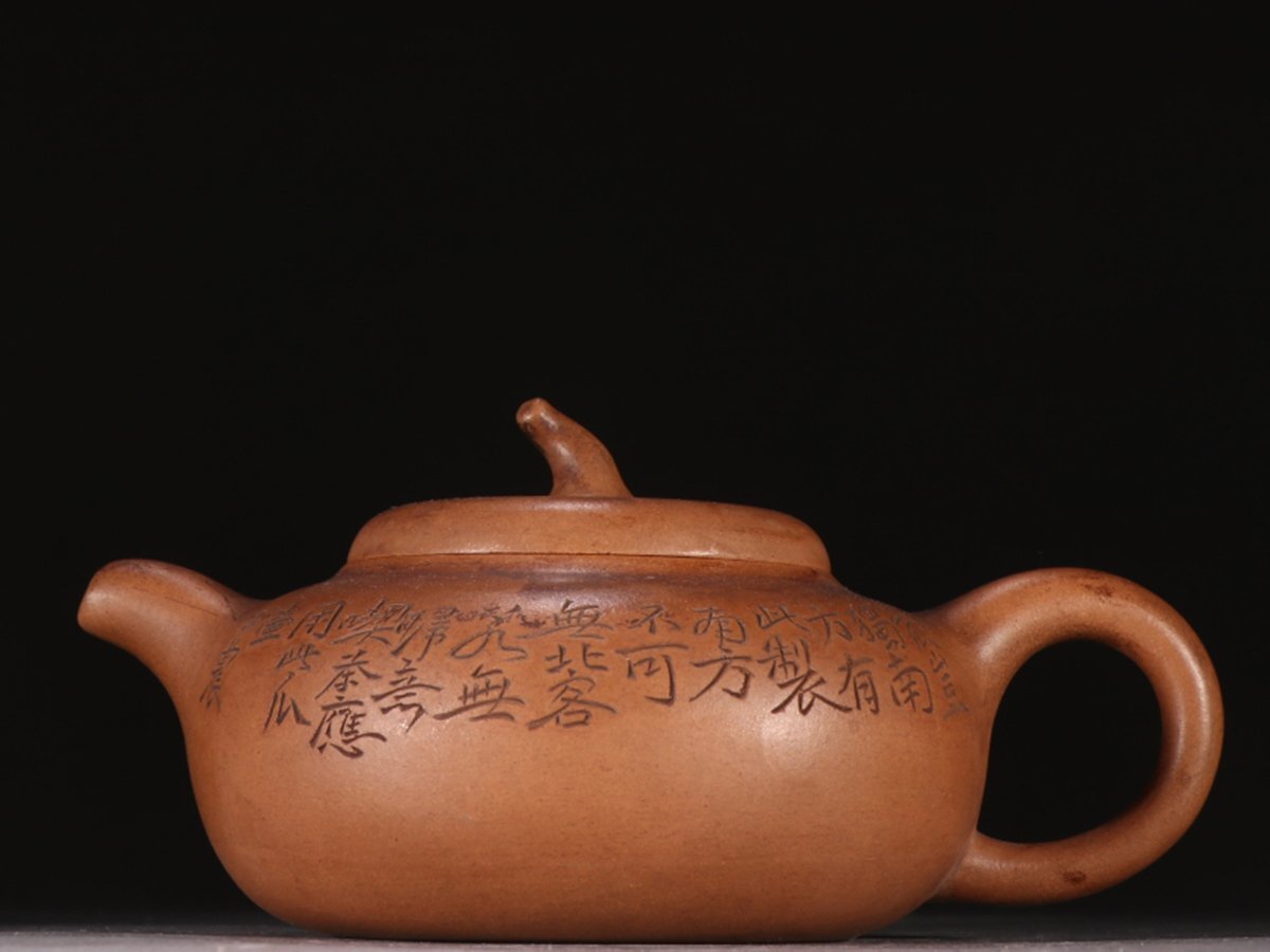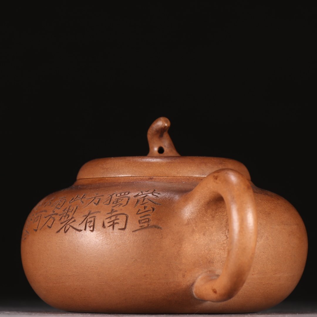 【安】清時代 園林底款 漢詩紋扁瓜茶壺 宜興紫砂 常滑 朱泥急須 煎茶道具 茶壷 古美味 古董品 時代物 288 サイズ(約寸) |