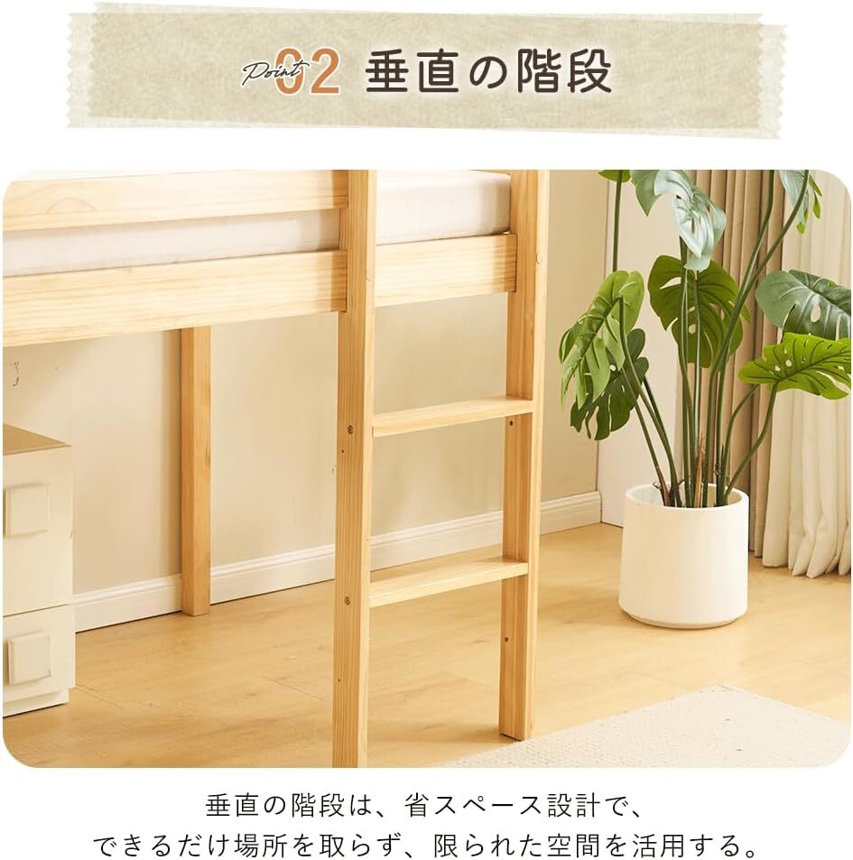 • 【一体型の階段】ベッドと一体の階段は、省スペース設計で、できるだけ場所を取らず、限られた空間を活用する。そして、階段のステップしっかりとしており、安全性を向上します。 手すりが設計されており、ベッドの上り下りがやすい!