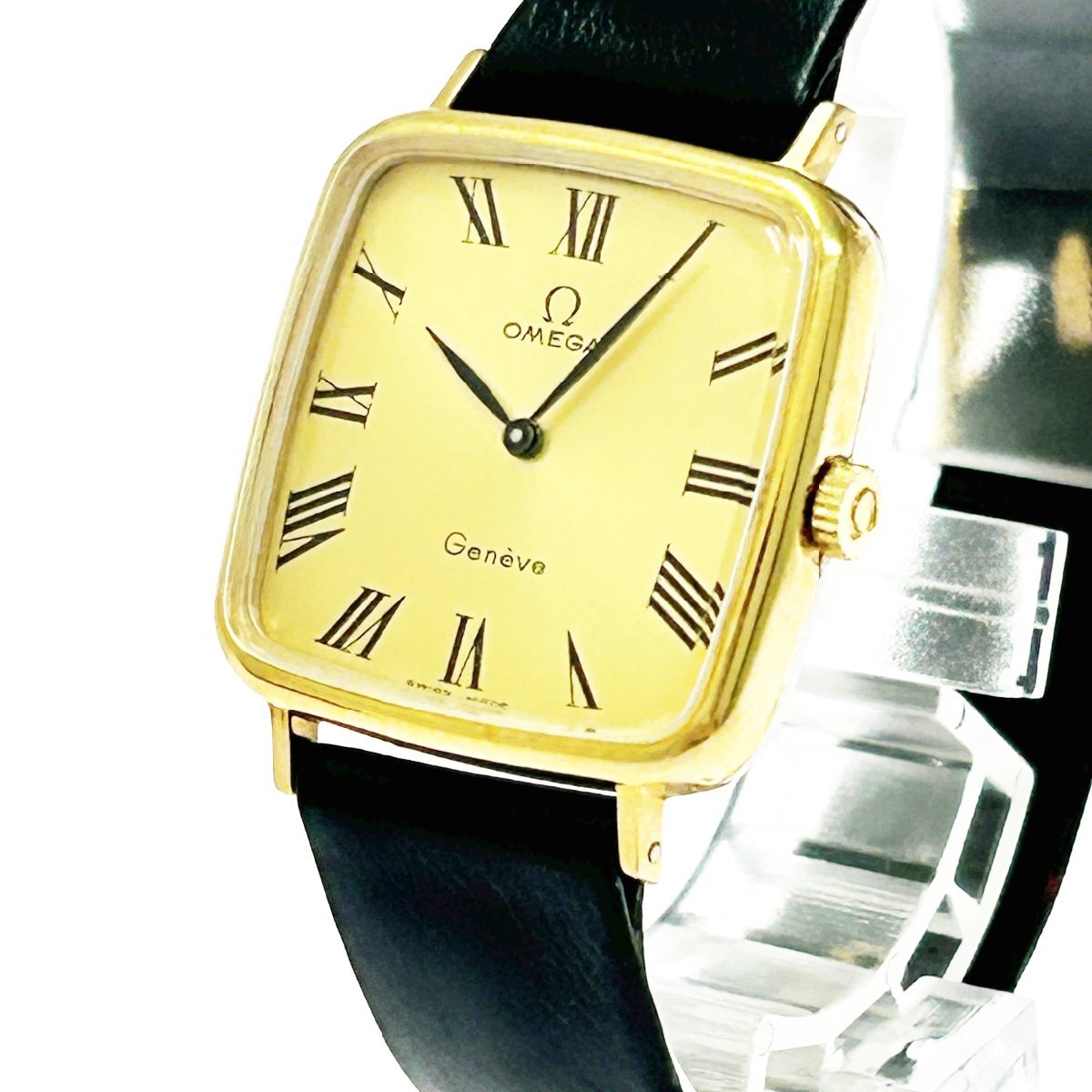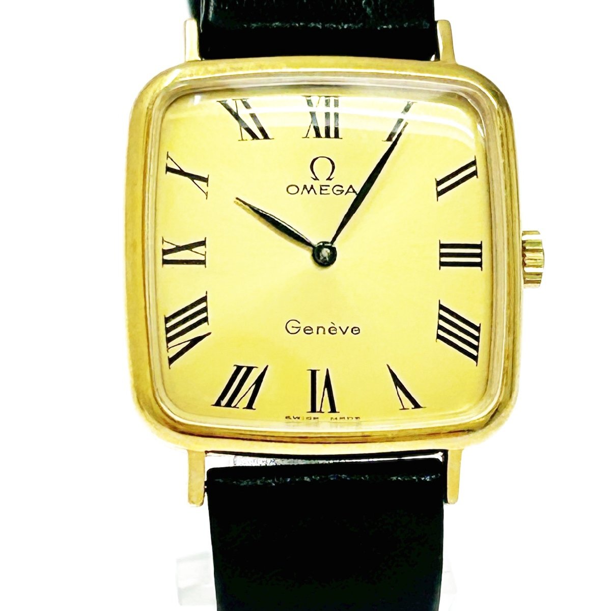 【1円スタート】【箱付き】OMEGA オメガ ジュネーブ スクエア GP×SS ゴールド文字盤 手巻き レディース腕時計 449747