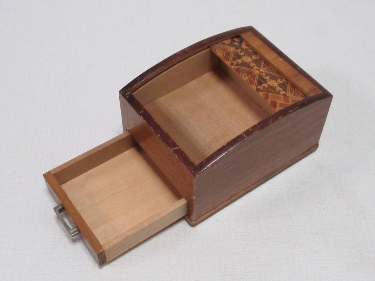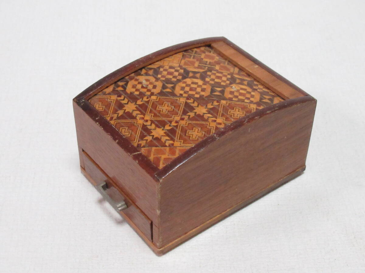 昭和レトロ 箱根寄木細工 開け閉めの際 音がします♪ 蛇腹 じゃばら 小物入 小箱/レトロモダン/寄せ木 アンティーク 観光土産 日本製