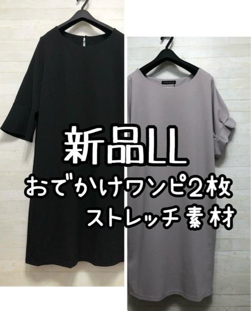 新品☆LL♪黒&グレー♪ストレッチ素材きれいめワンピース2枚♪☆Q279
