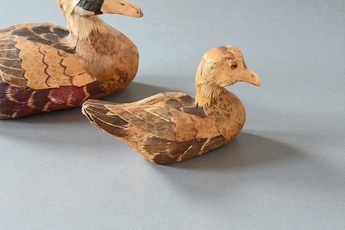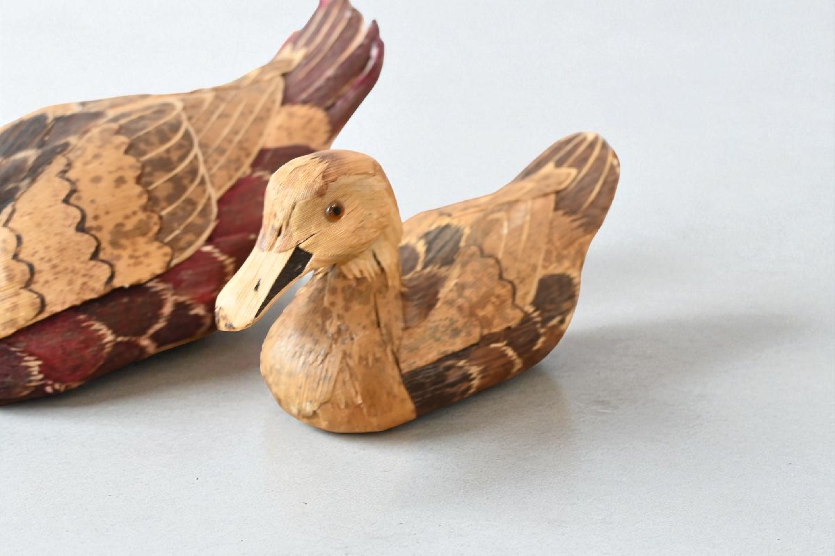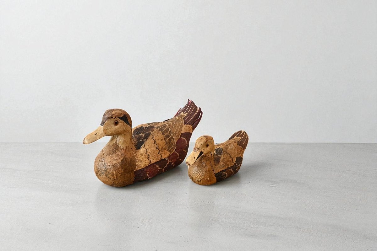 title:木彫の鴨の置物 2点セット デコイ 可愛い鳥さんのお人形 羽根加工 レトロ ナチュラル カントリー 古道具のgplus広島 2509i