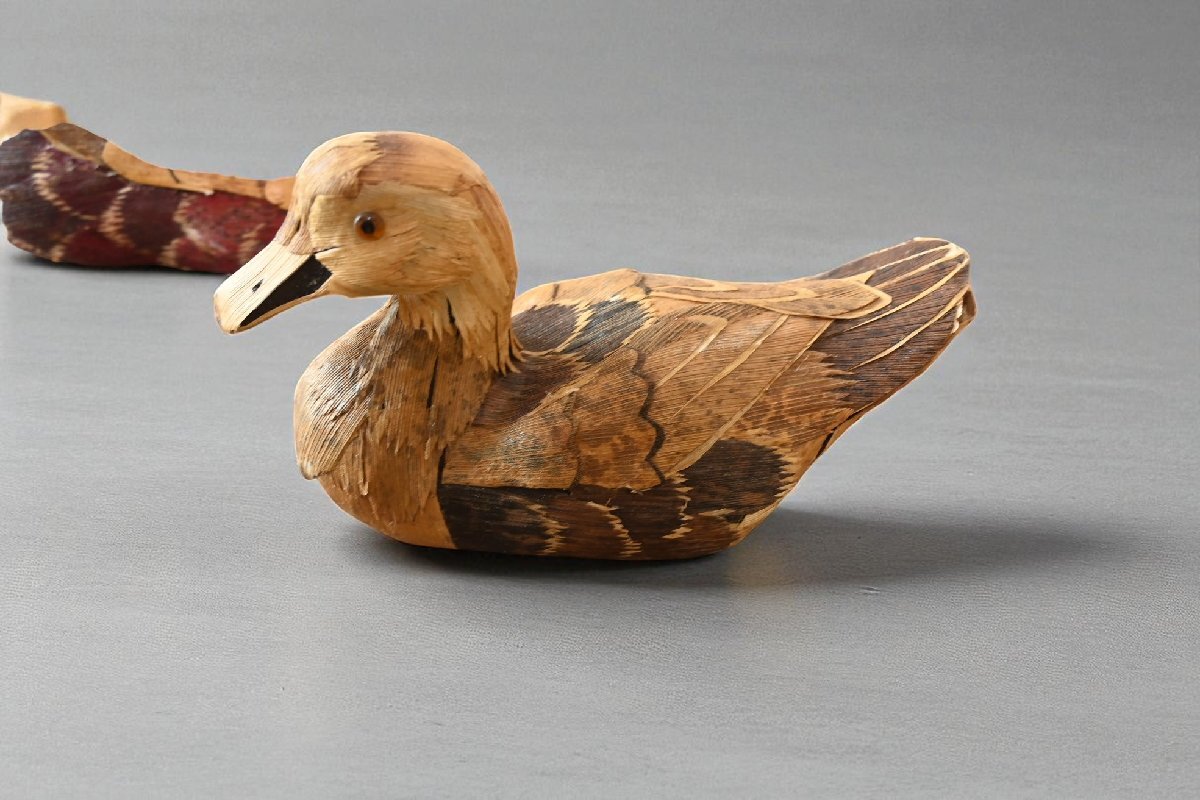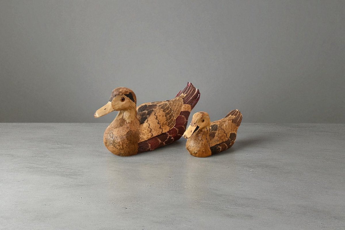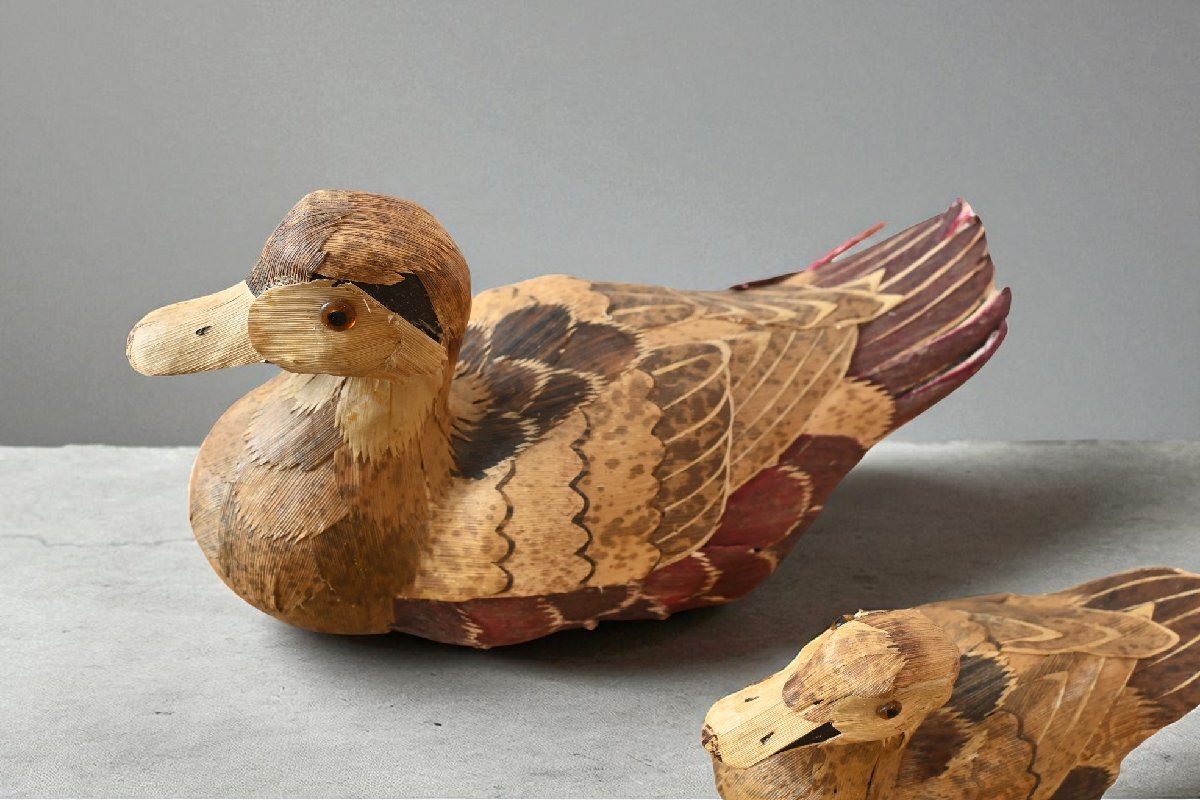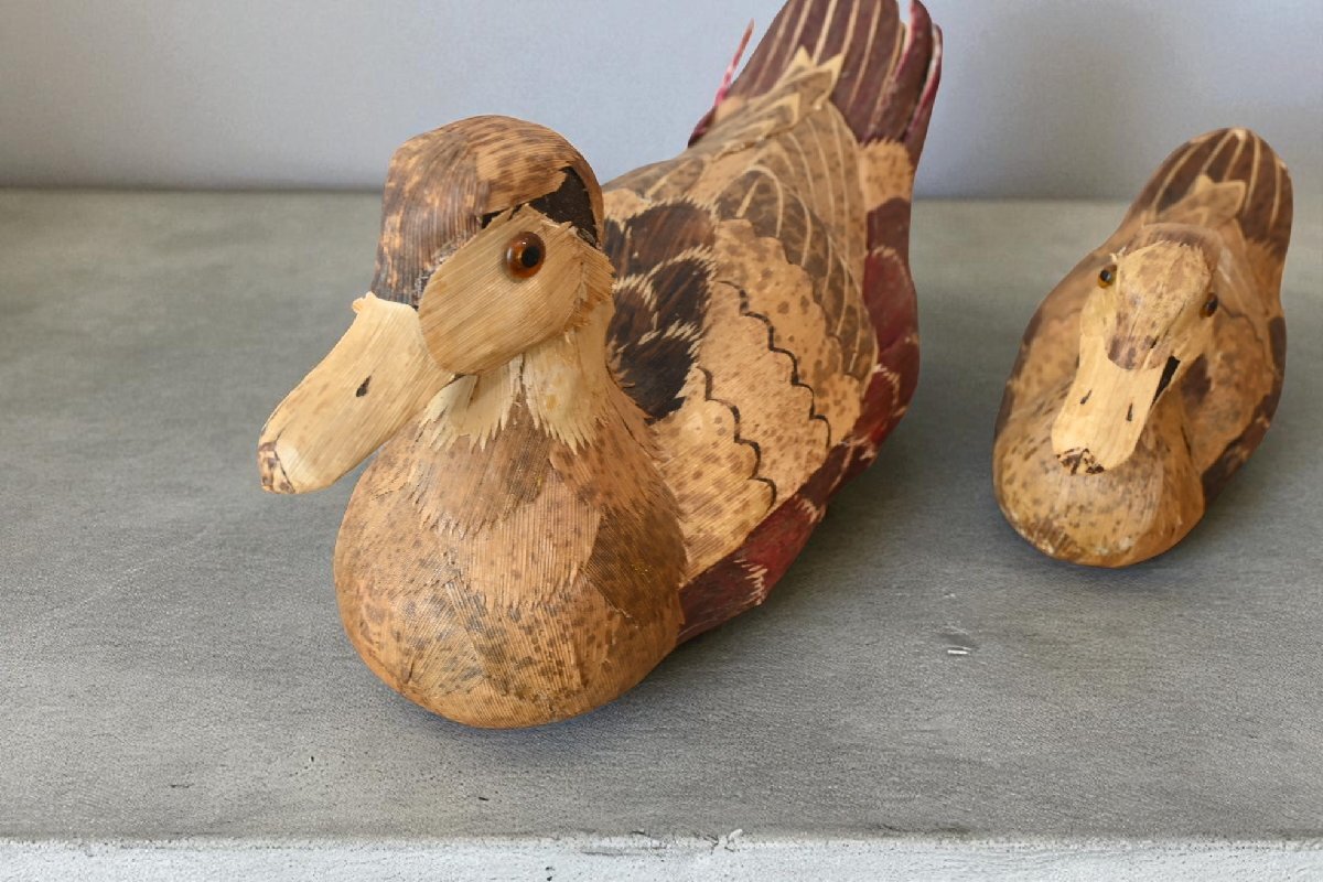 title:木彫の鴨の置物 2点セット デコイ 可愛い鳥さんのお人形 羽根加工 レトロ ナチュラル カントリー 古道具のgplus広島 2509i