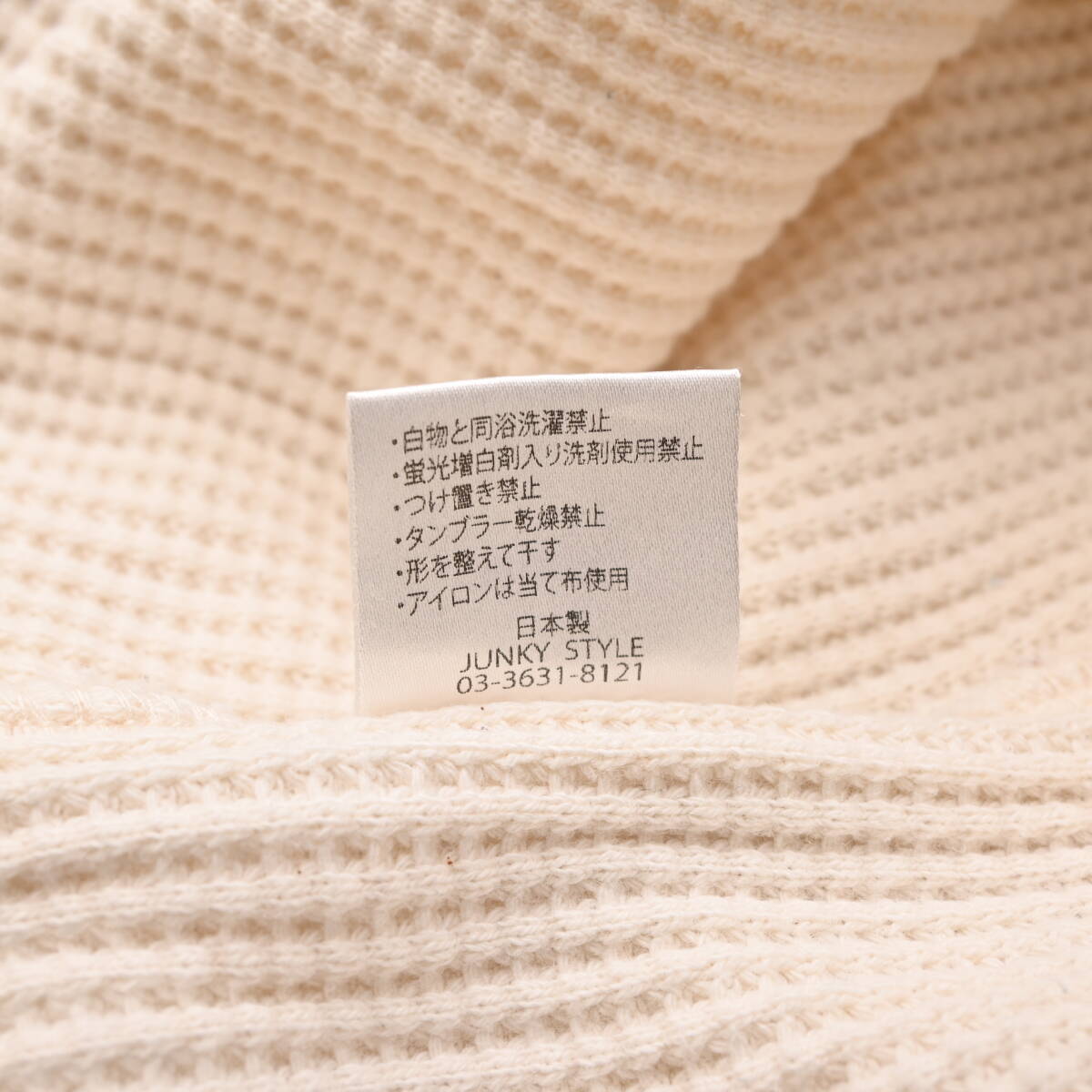 JUNKY STYLE ジャンキースタイル 長袖 ヘンリーネック サーマル カットソー S ホワイト 白 ロンT ワッフル BA3343