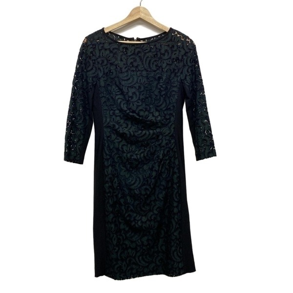 ラルフローレン RalphLauren サイズ6 M - ダークグリーン×黒 レディース 七分袖/ひざ丈/レース ワンピース