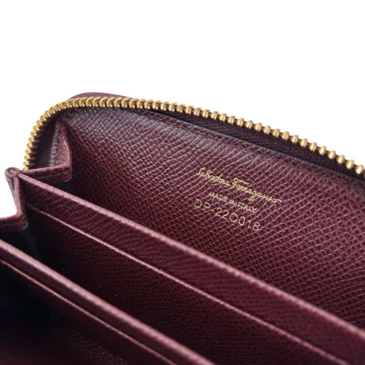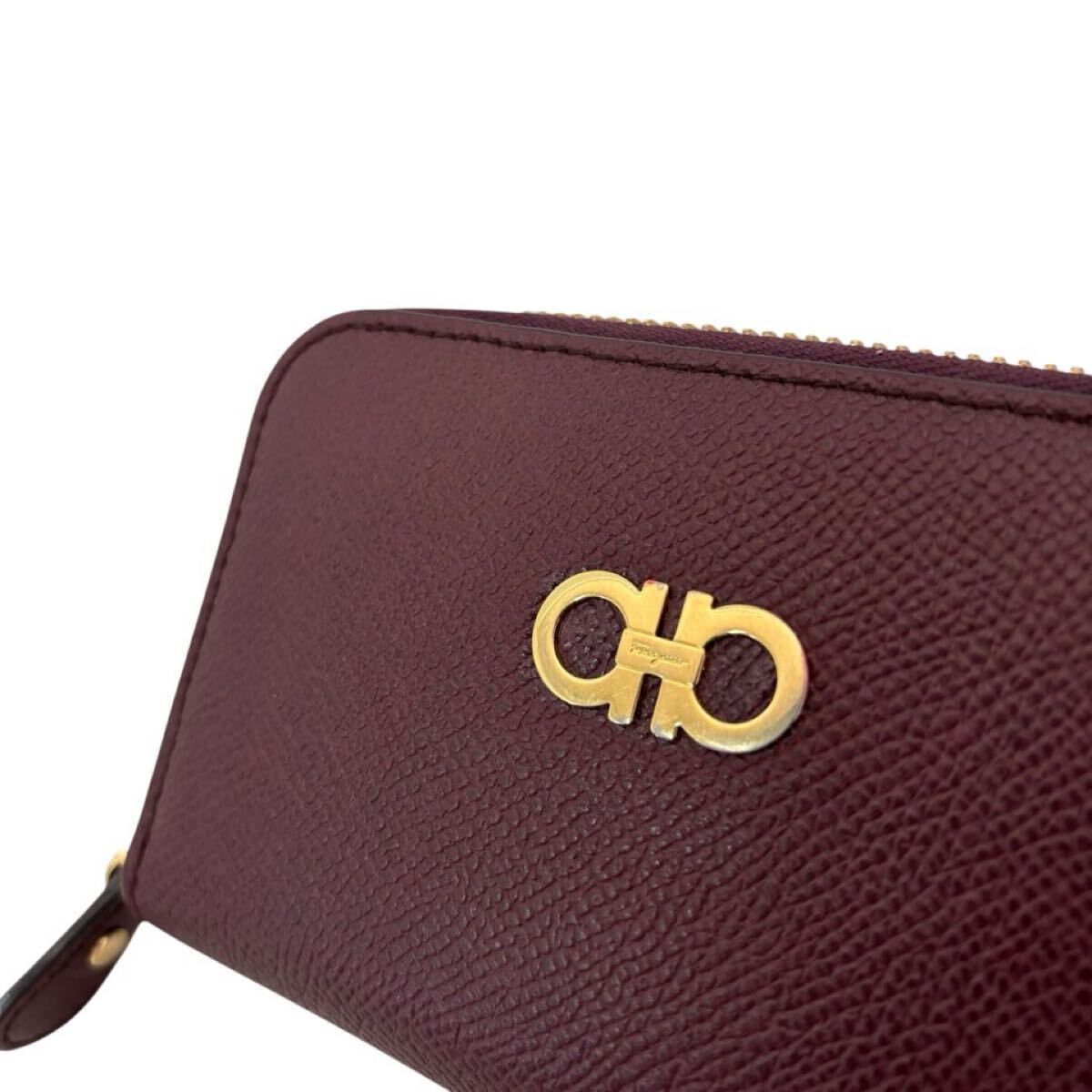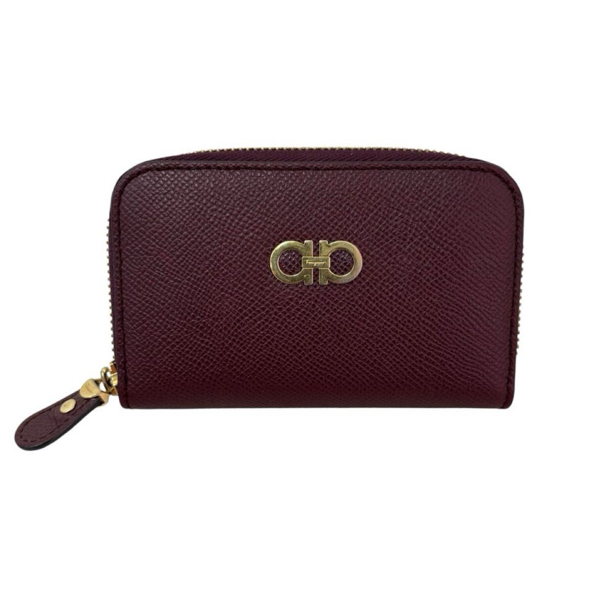 【美品】 フェラガモ コインケース ラウンドファスナー ダブルガンチーニ ボルドー 男女兼用