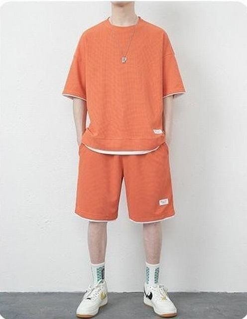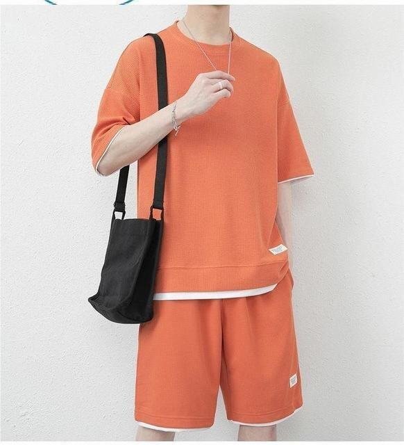 夏服 半袖 ジャージ 上下セット ショットパンツ サマー セットアップ メンズ 通気 部屋着 接触冷感 涼しいA03 M