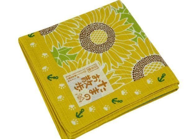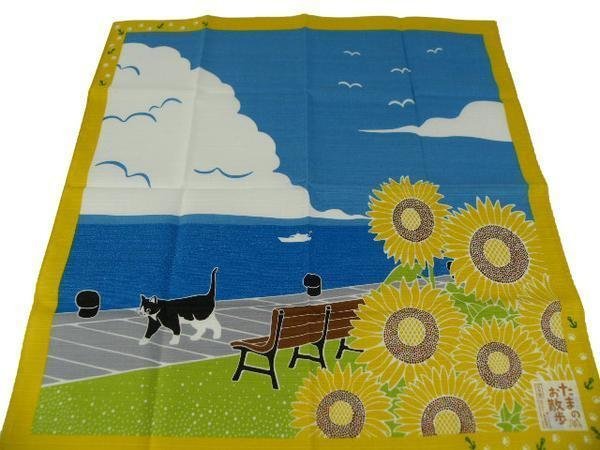 ■風呂敷■ たまのお散歩 綿 シャンタン 小風呂敷 向日葵 【尺三巾 ねこ 猫 ネコ お弁当包み 日本製 季節柄 8月 夏】