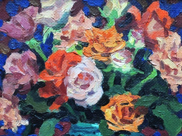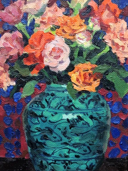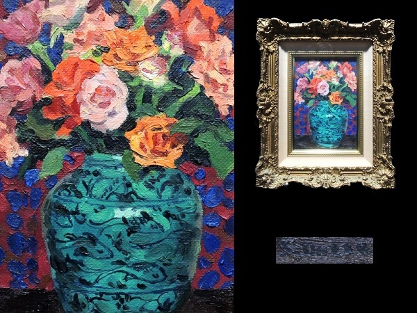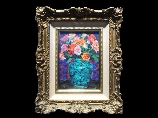 洋画家:大津鎮雄による作品 「ペルシャ壷の薔薇」  額装品 になります。