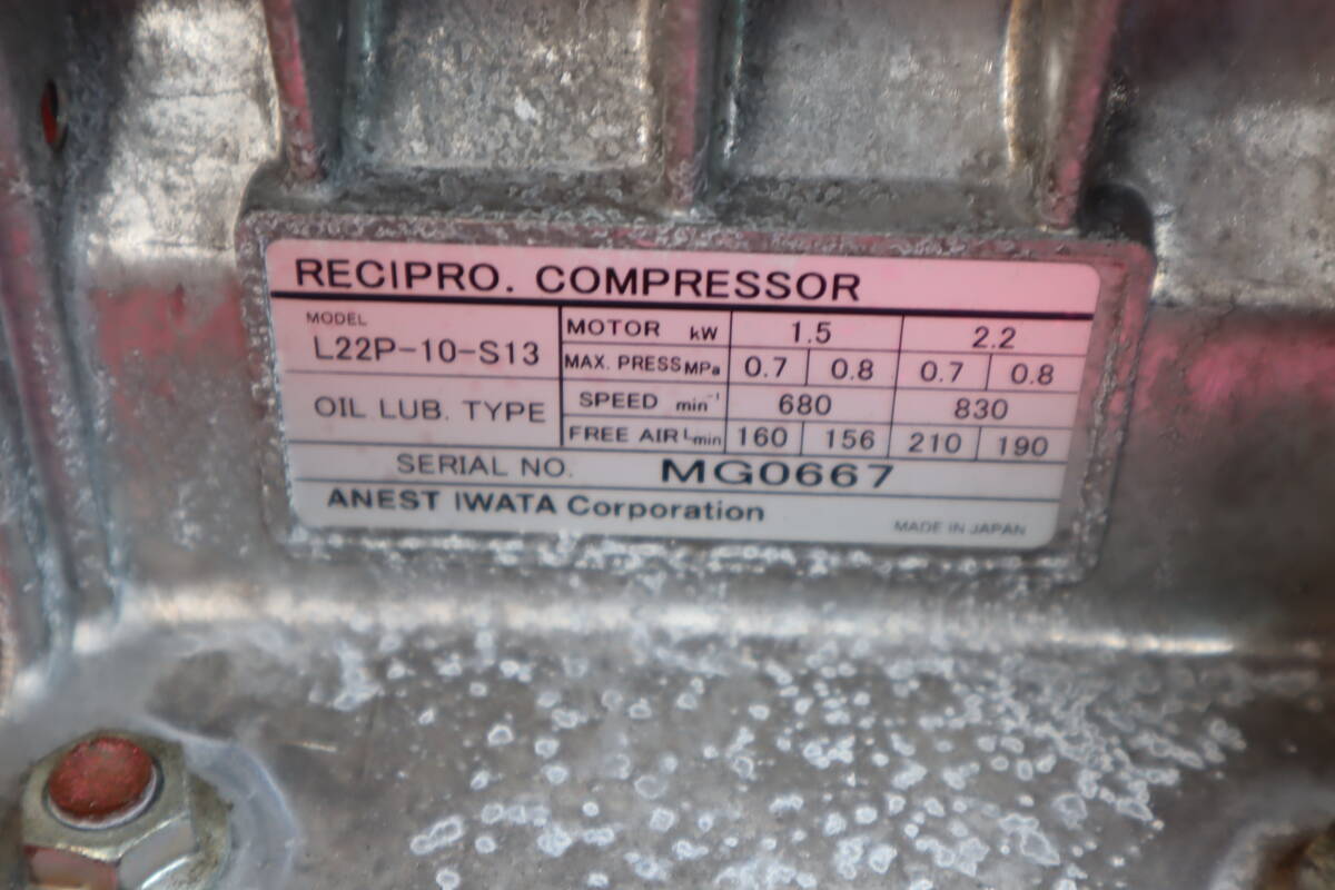 | ANEST 岩田エアーコンプレッサー L22P-10-S13 1.5kW(2馬力) 三相200V. 整備点検済 動作確認済 即決価格 | ||