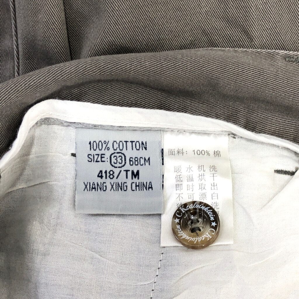 【商品管理番号】 R9273 【ブランド】 Calvin klein/カルバンクライン 【サイズ】 33 【実寸サイズ】 ウエスト:約78cm 股上:約35cm 股下:約80cm わたり幅:約32cm 裾幅:約22cm 【主な素材】 表地 : コットン 【色】 カーキ 【仕様】 00年代 2タック 【状態】 特記事項:色褪せ |