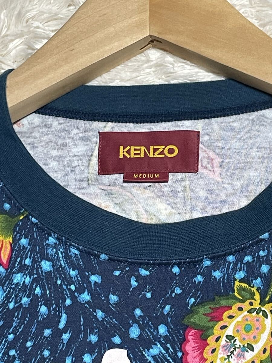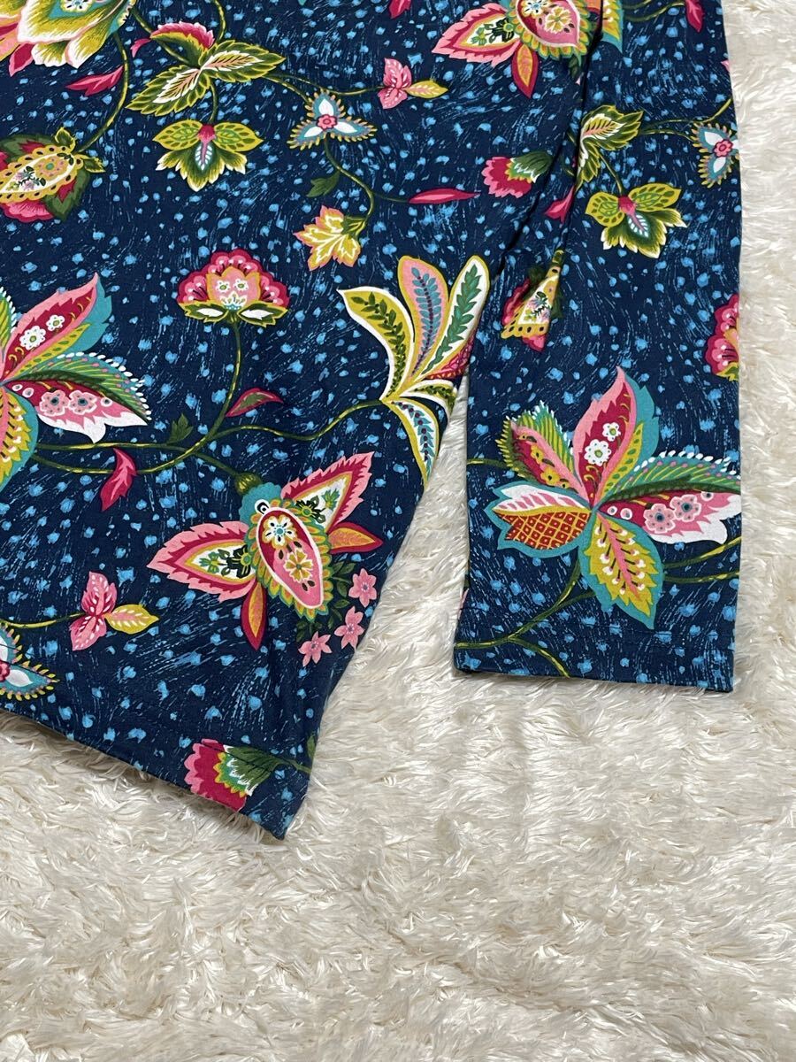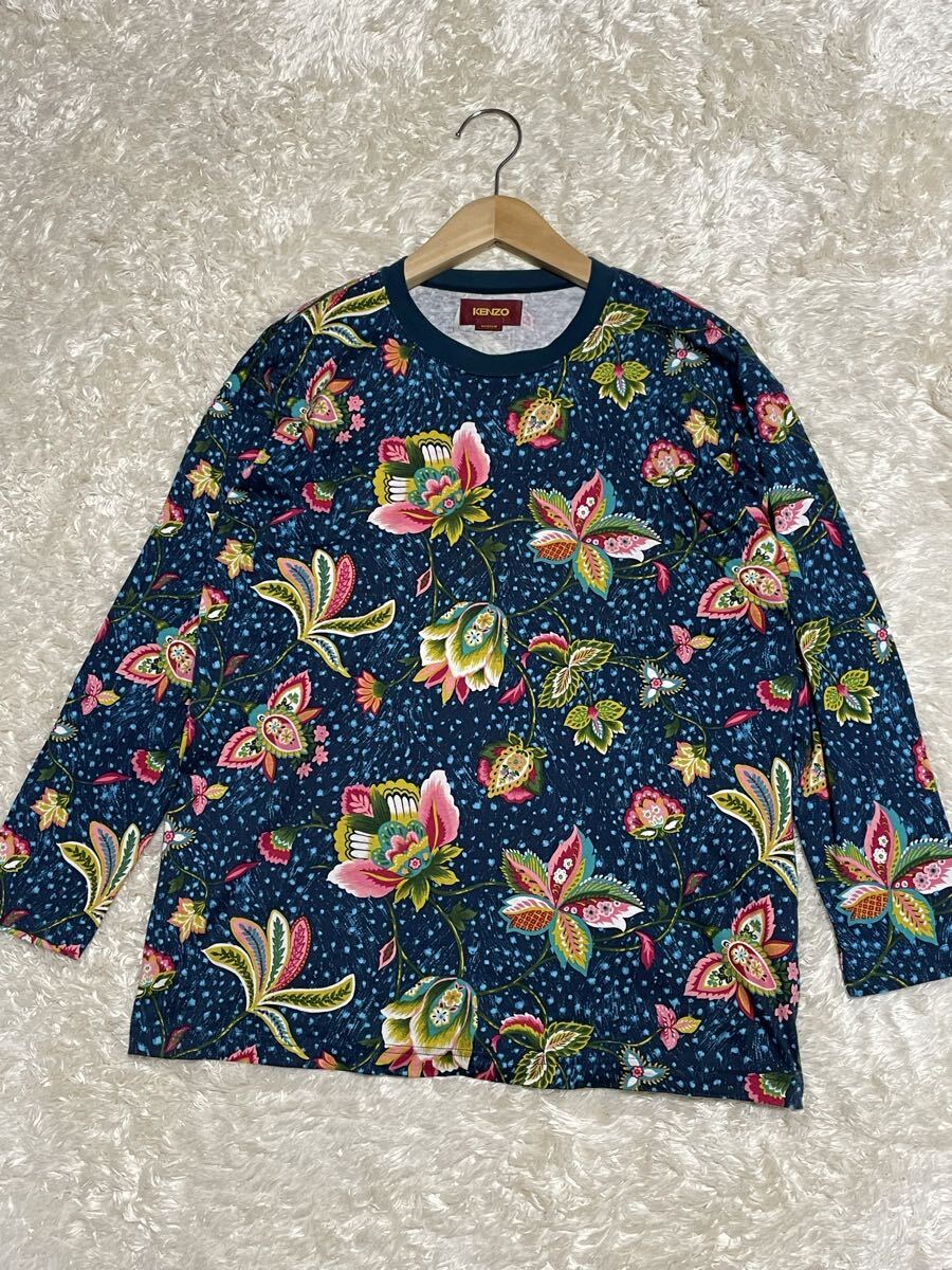 ☆ 希少レア ☆ size M ☆ KENZO ヴィンテージ 総花柄 七分丈 Tシャツ TEE 総柄 ケンゾー NAVY ネイビー メンズ