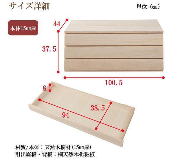 本体:天然木(桐材) 引出し底板・背板:天然木桐化粧板 本体15mm厚+天板は2重構造 耐荷重量/天板:約20kg 完成品 国産品 | |